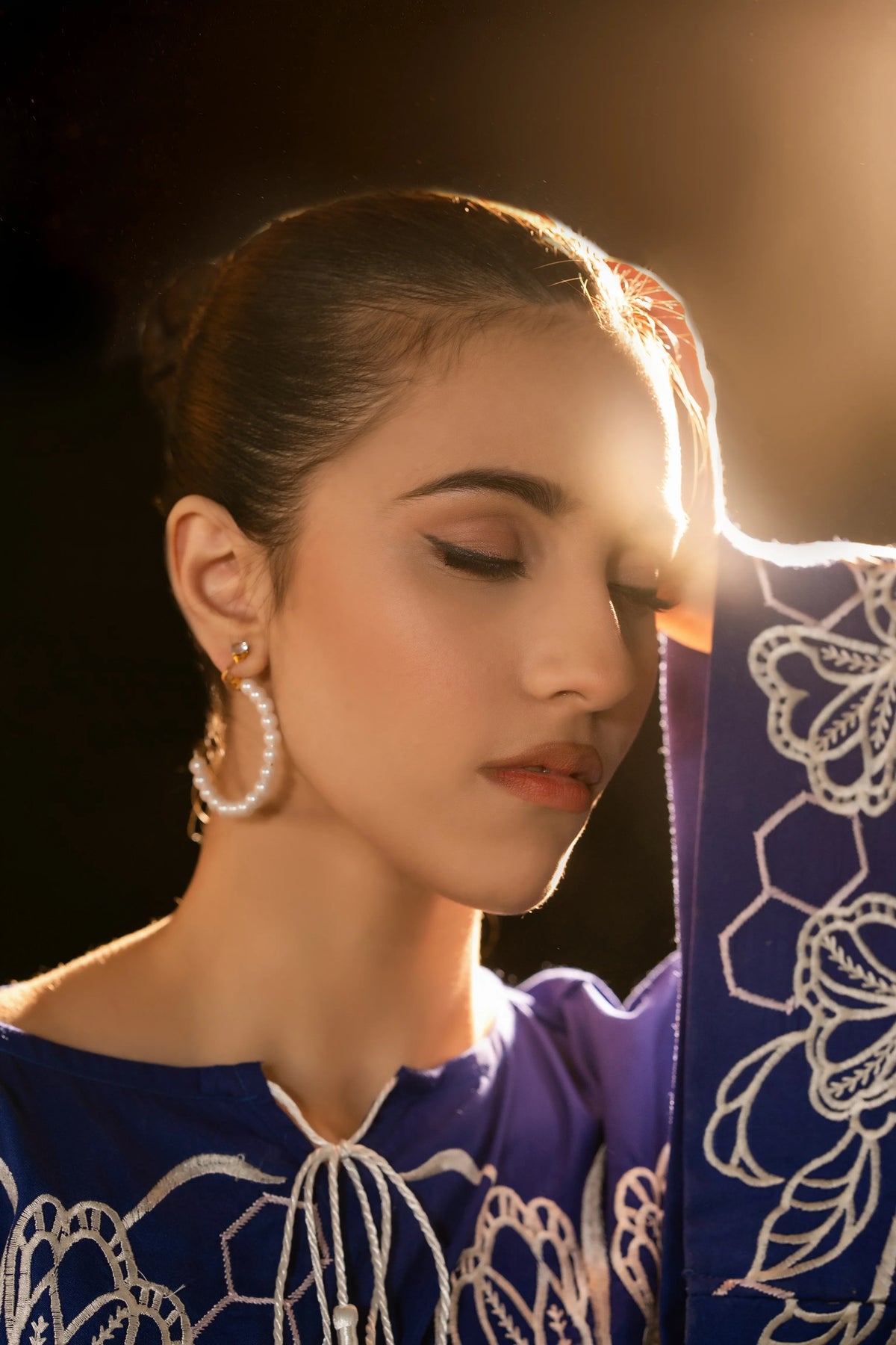 This article consists of a solid 2-piece set with an intricate embroidery detail touch on the shirt and trousers. The outfit consists of a mid-length style shirt and fitted pants.