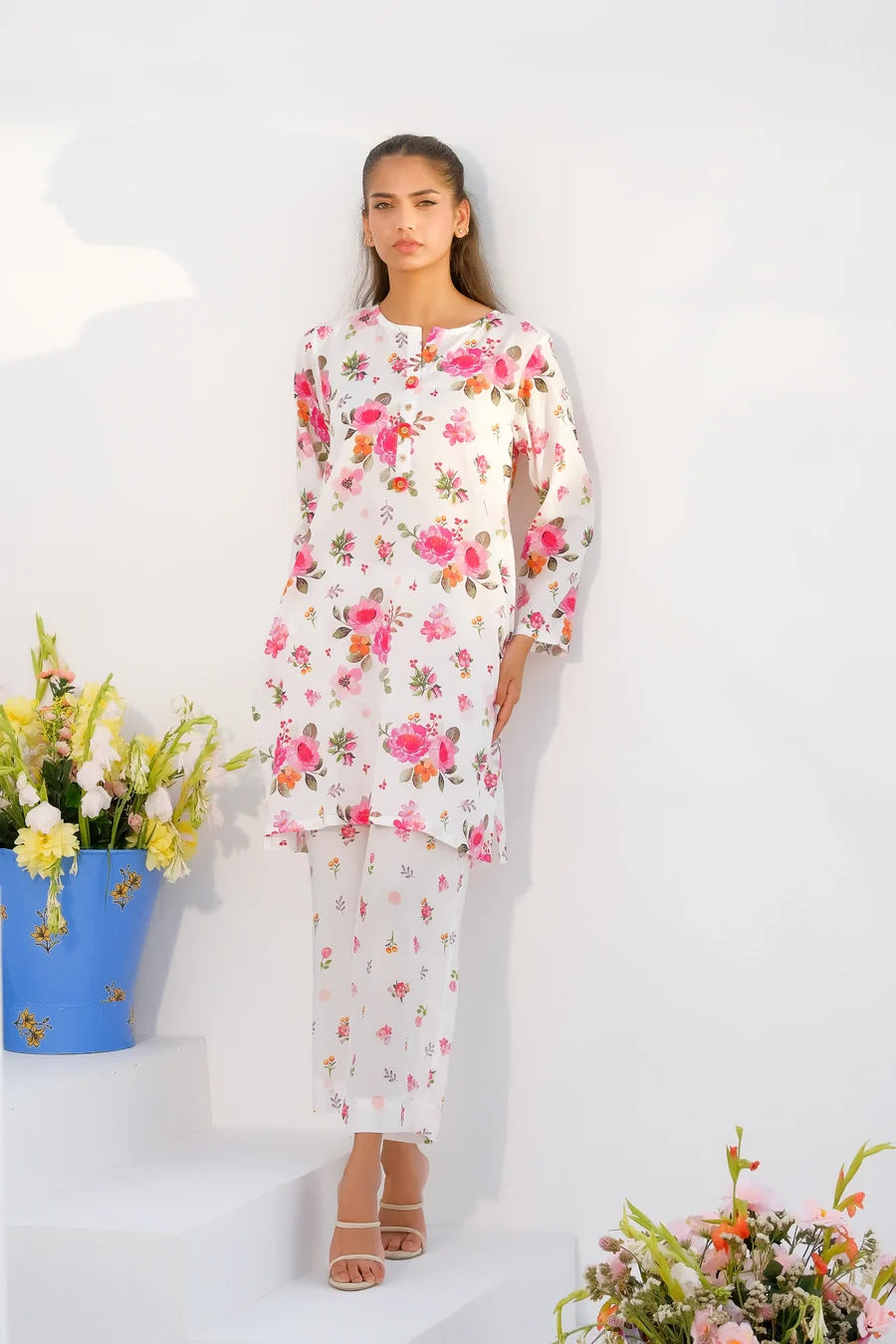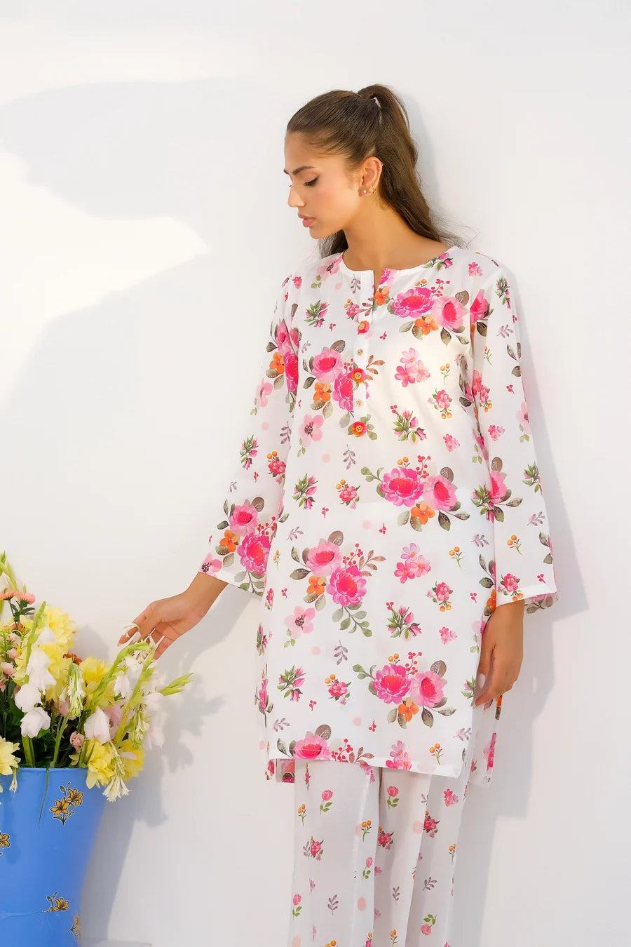 Step up your wardrobe with our exquisite printed Matching separates. This stunning 2-pc enhances intricate button detailing on the neckline of the shirt with convenient side pockets, and perfectly paired trousers.