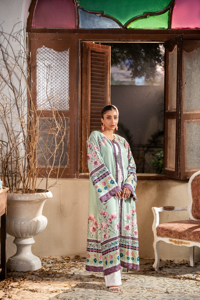 A beautifully printed one-piece featuring intricate floral patterns and a relaxed silhouette. The straight-cut shrug offers effortless elegance, perfect for both casual outings and semi-formal occasions.