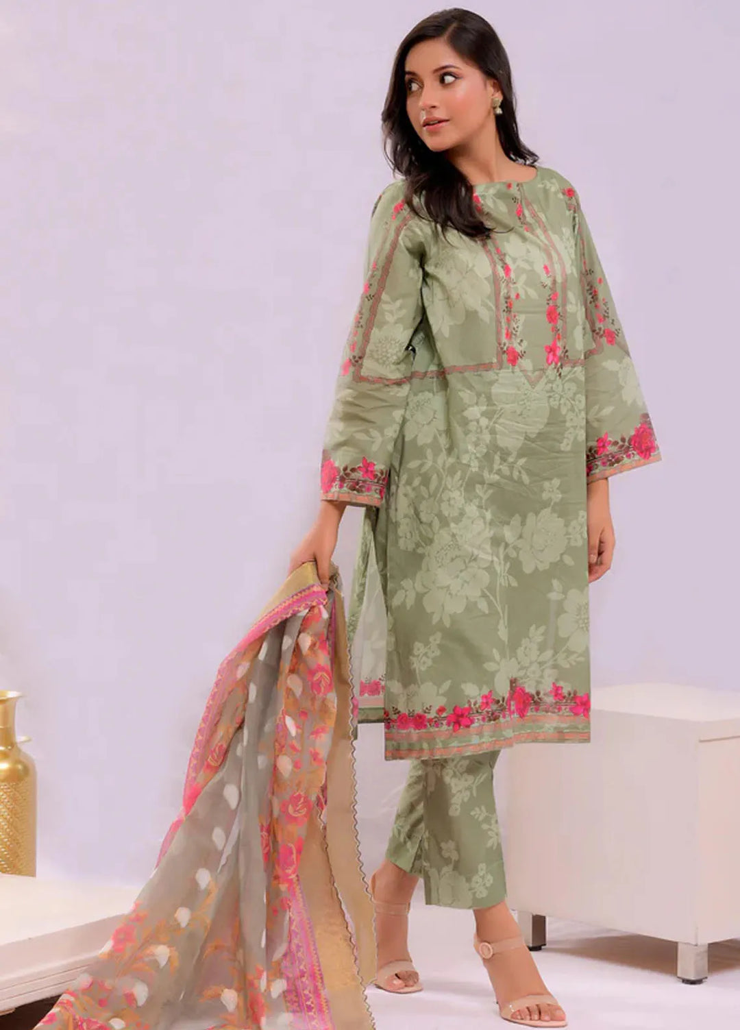 Adaa By Mahnoor Printed Cotton Lawn Suits Unstitched 2 Piece Olive Green - Summer Collection