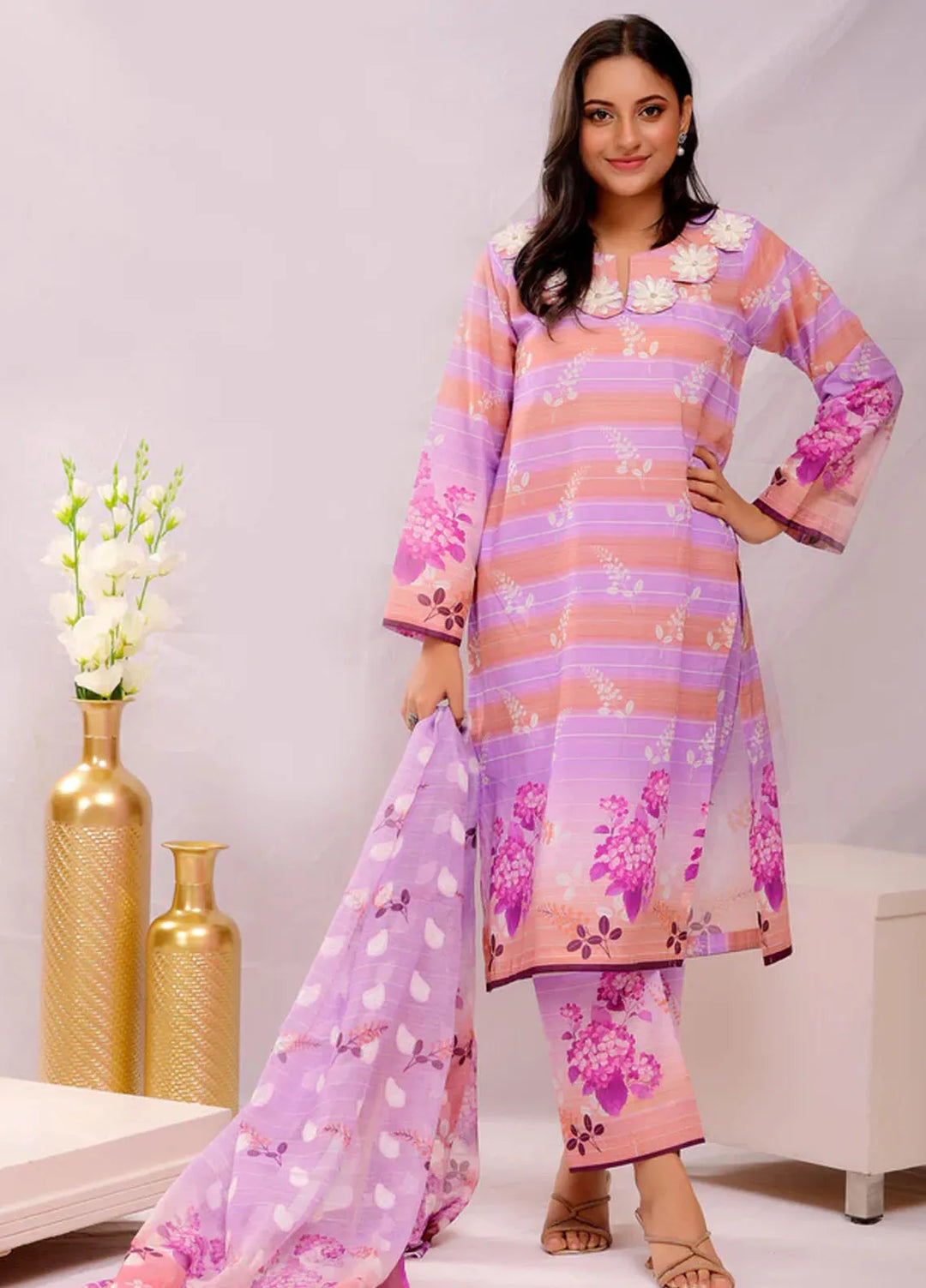 Adaa By Mahnoor Printed Cotton Lawn Suits Unstitched 2 Piece Lilac - Summer Collection