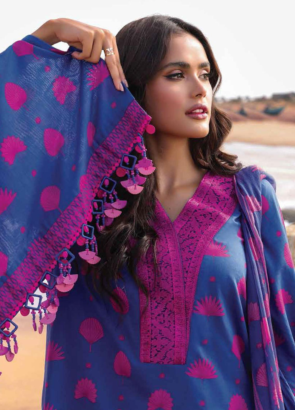 Al Karam EmbroideRed Lawn Suits Unstitched 3 Piece AK23SSL SS-30-23-Blue - Summer Collection