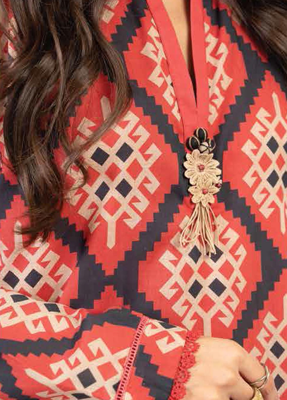 Al Karam Printed Lawn Suits Unstitched 2 Piece AK23SSL SS-53-23-Red - Summer Collection