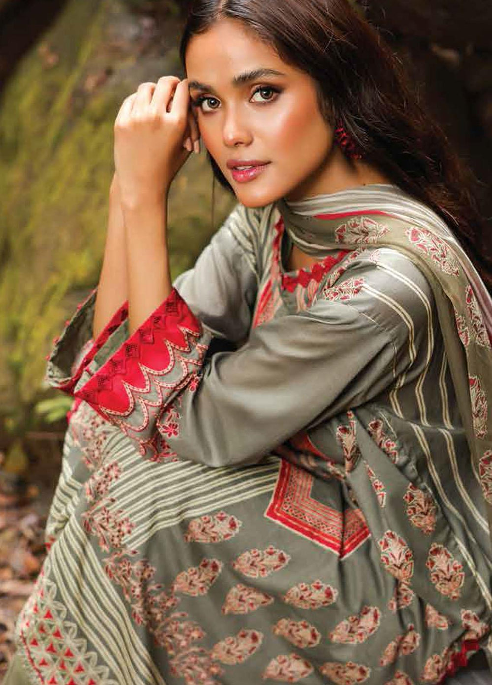 Al Karam Printed Lawn Suits Unstitched 3 Piece AK23SSL SS-22-23-Olive Green - Summer Collection
