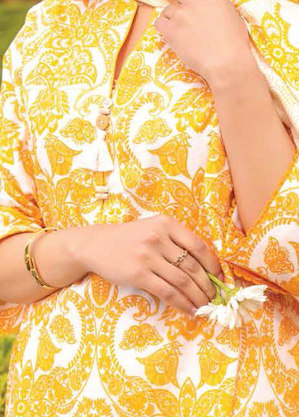 Al Karam Printed Lawn Suits Unstitched 3 Piece AK23SSL SSF-10-23-Yellow - Summer Collection