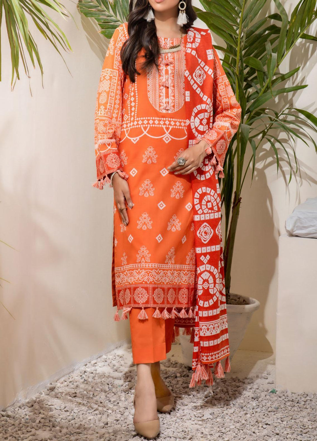 LimeLight Printed Lawn Unstitched Kurties LL21US U1595 Orange - Summer Collection
