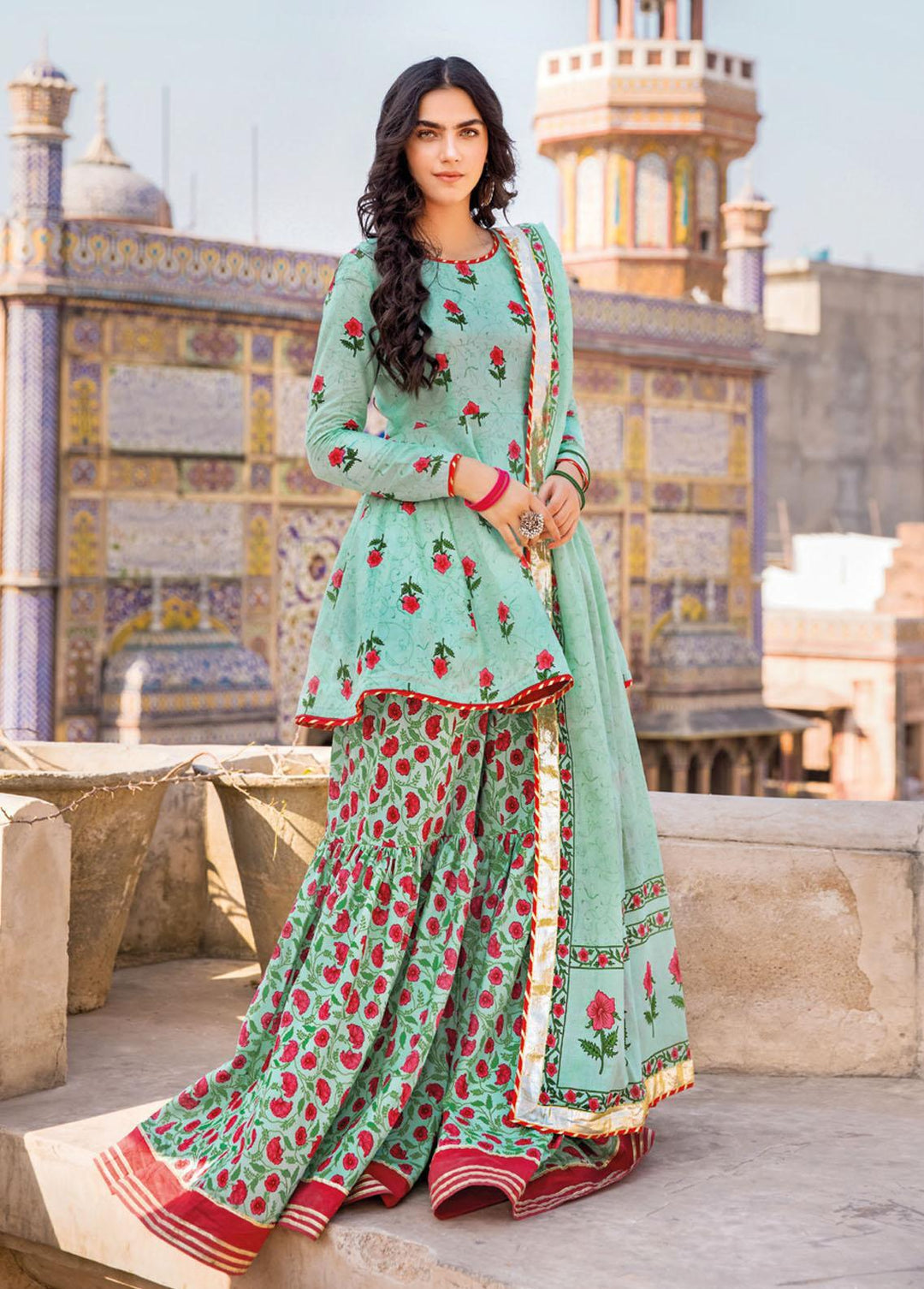 Al Karam Printed Lawn Suits Unstitched 3 Piece AK23SSL SS-2.1-23-Green - Summer Collection