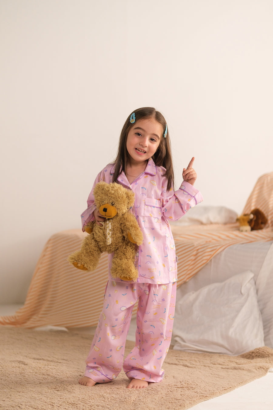 Baby Nest Kids Premium Night Suits For Girls Printed 2 Piece Boski Linen Pink Puff - Casual Collection