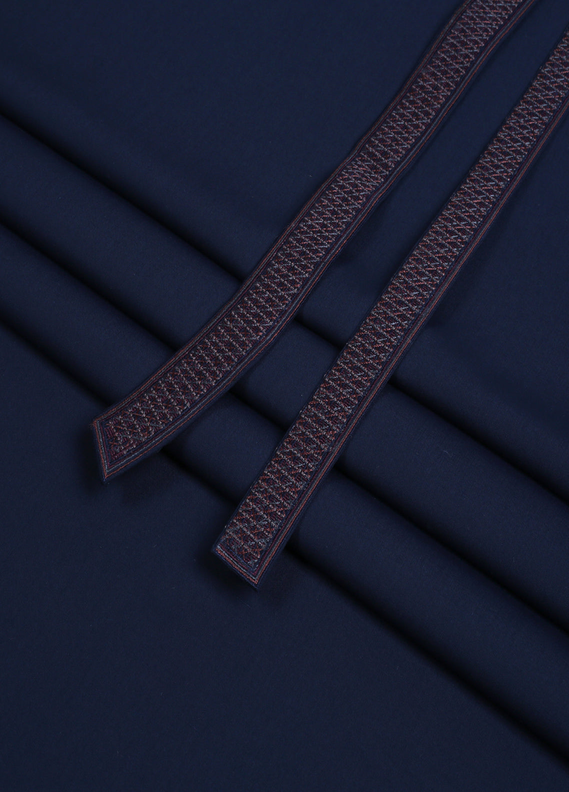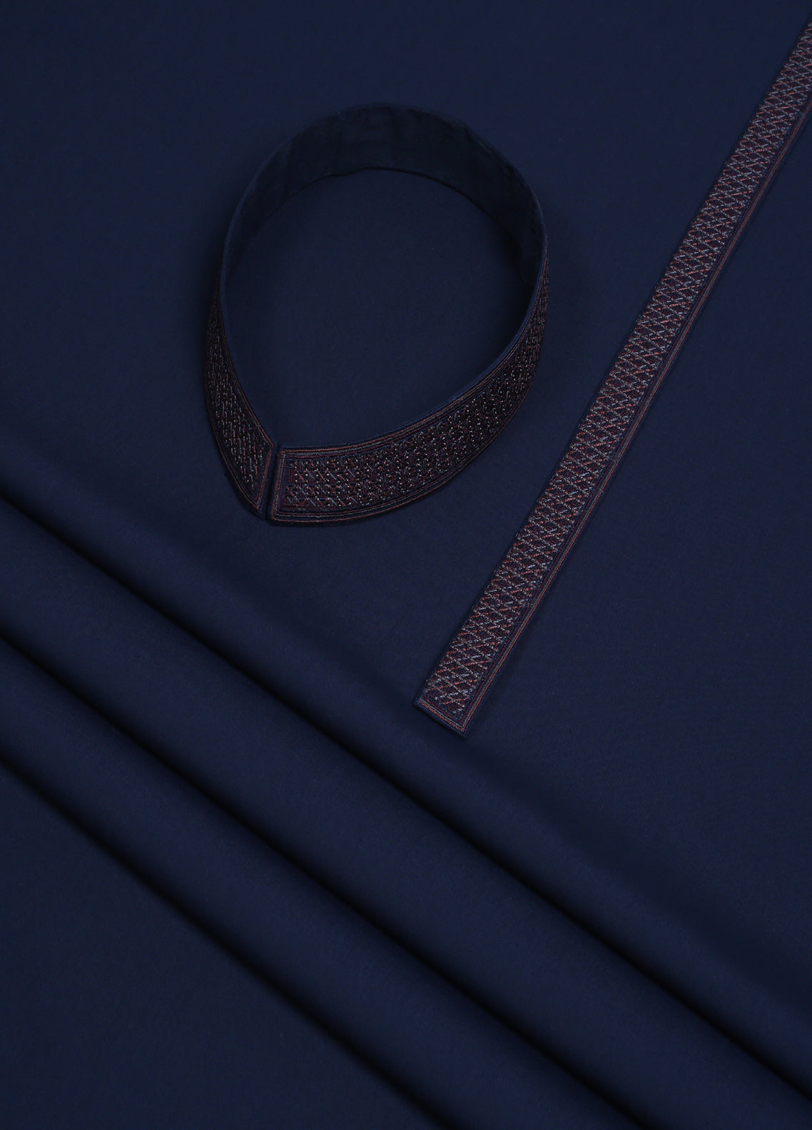 Product category: Men Unstitch 5-Colors Cross-Stitch Embroidered Bann & Front Placket Kameez Shalwar With Contrast Colors & Signature Pattern Embroidery Design.