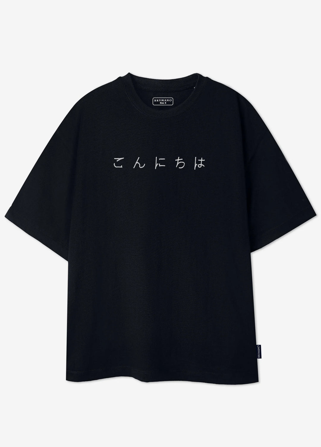 Brumano Cotton Printed Men -Black Oversized T-Shirt With Minimalist 'Hello' Embroidery