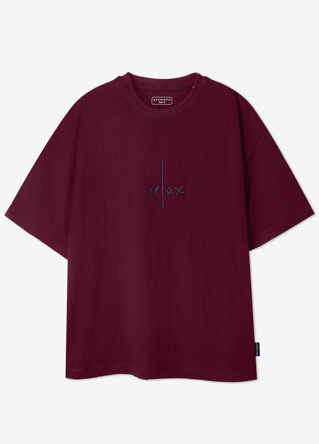 Brumano Cotton Printed Men - Maroon Oversized T-Shirt With Minimalist 'Relax' Embroidery