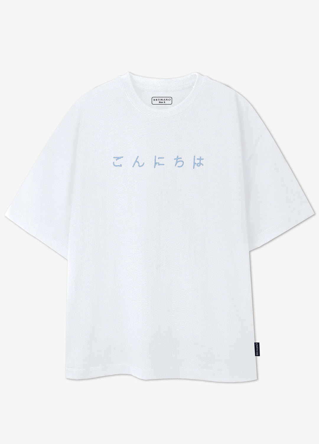 Brumano Cotton Printed Men - White Oversized T-Shirt With Minimalist 'Hello' Embroidery