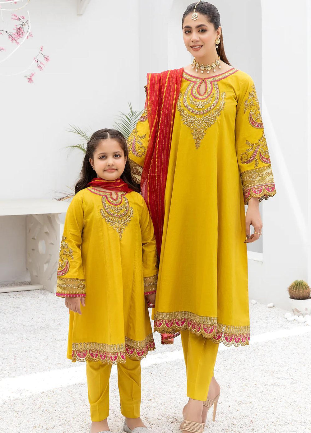 - Plain Cambric Frock With Embroidered Neckline Embroidered Border Daman And Sleeves And Embroidered Motifs On Sleeves