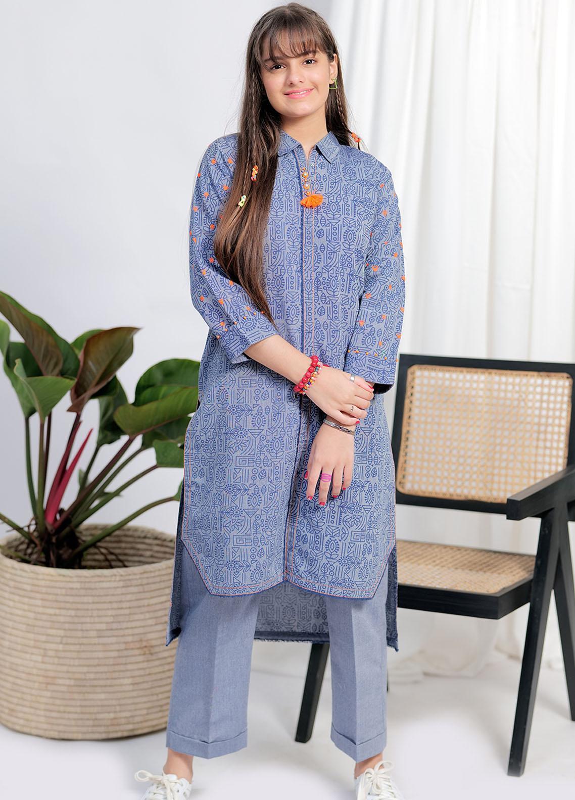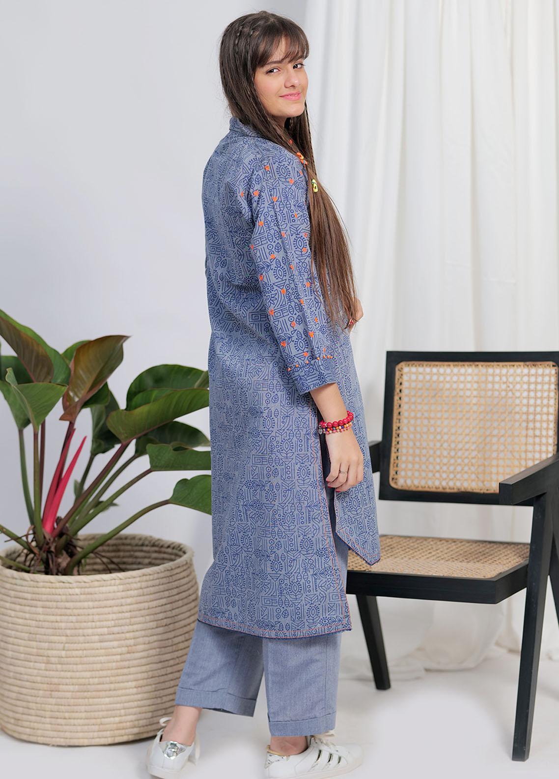Senorita Cotton Pret 2 Piece Suit for Girls - GAC-02109-BLU/OGN