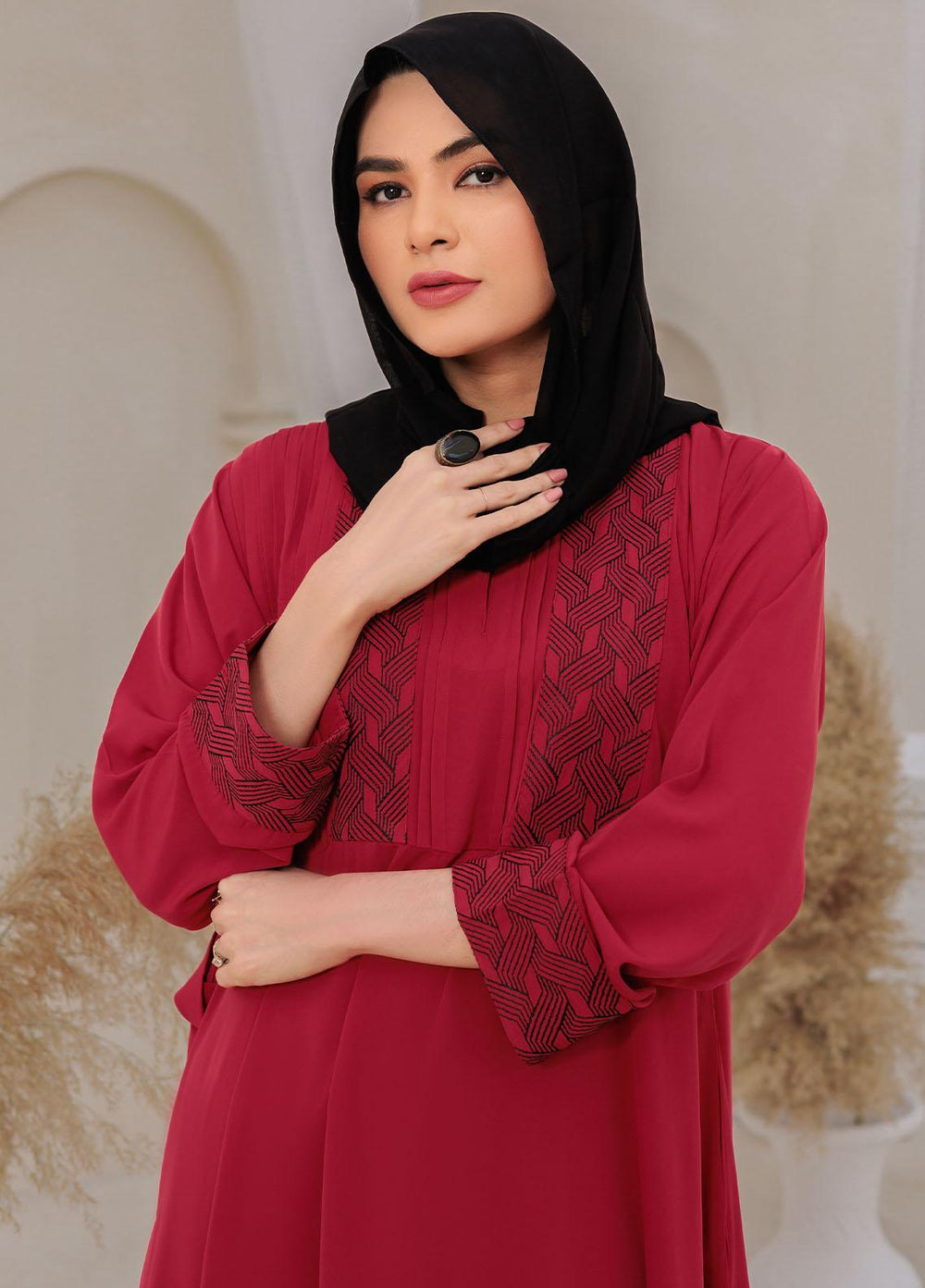 The Great Master (TGM) Korean Nida Front Closed Abaya Jasper Red