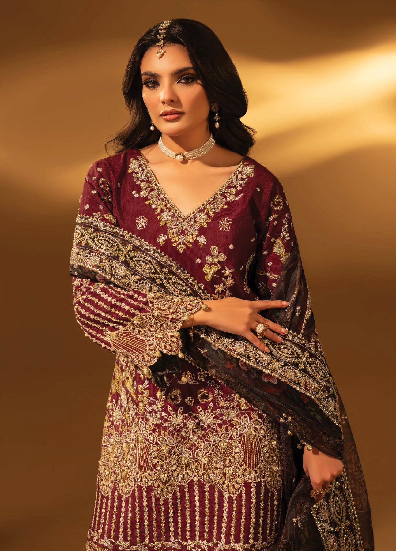 Aylin Unstitched Raw Silk Embroidered Suits 3 Piece AYL25US VIOLET BLOOM - Festive Collection