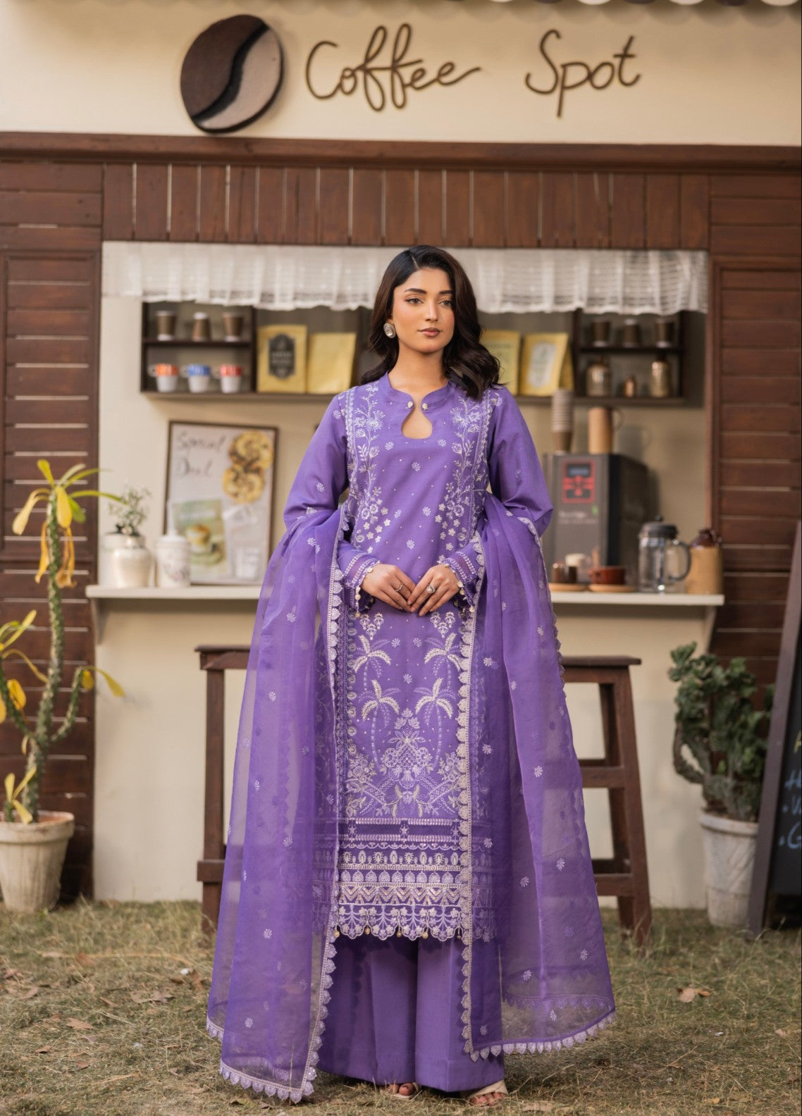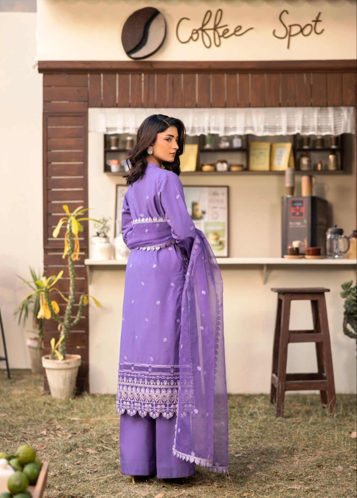 Embroidery: Lavender & Silver thread and dupatta with floral borders