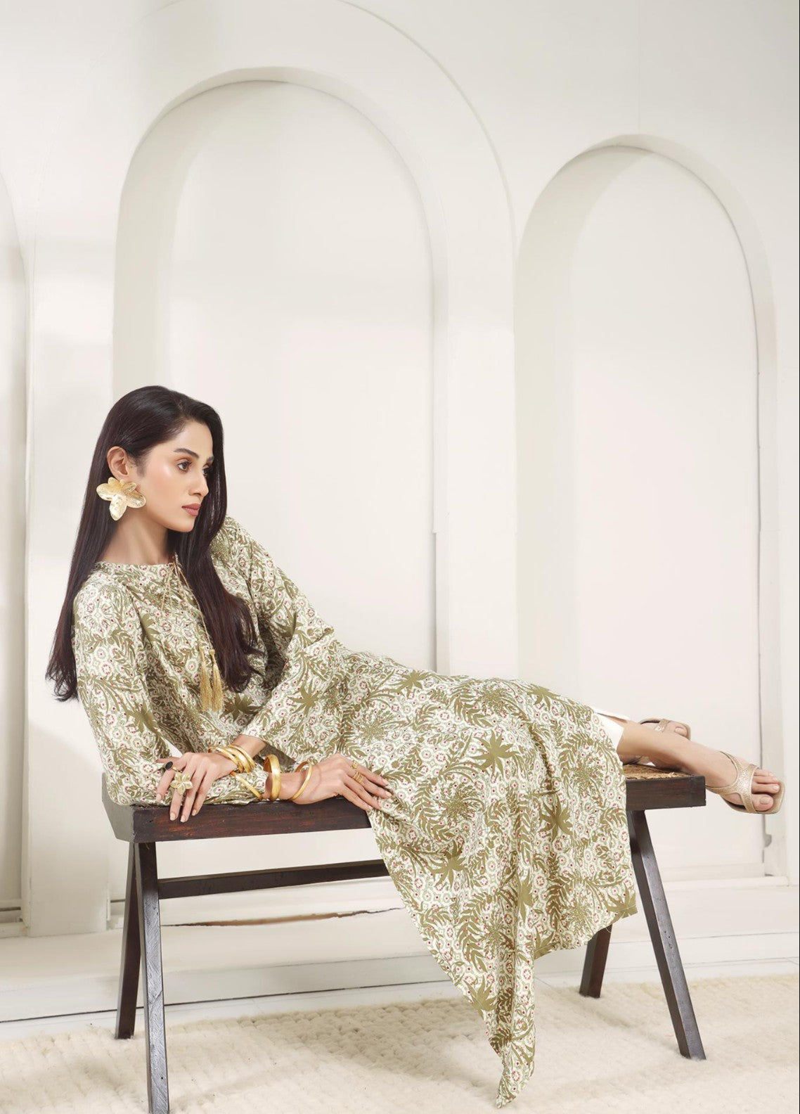Bring effortless sophistication to your wardrobe with Shanghai Leaf, a serene white and olive Arabic linen 2-piece from Madiha Gohar’s Digital Silk Affair Collection. Crafted from premium Arabic linen, this ensemble features a gracefully printed leaf motif design that captures nature’s quiet elegance.