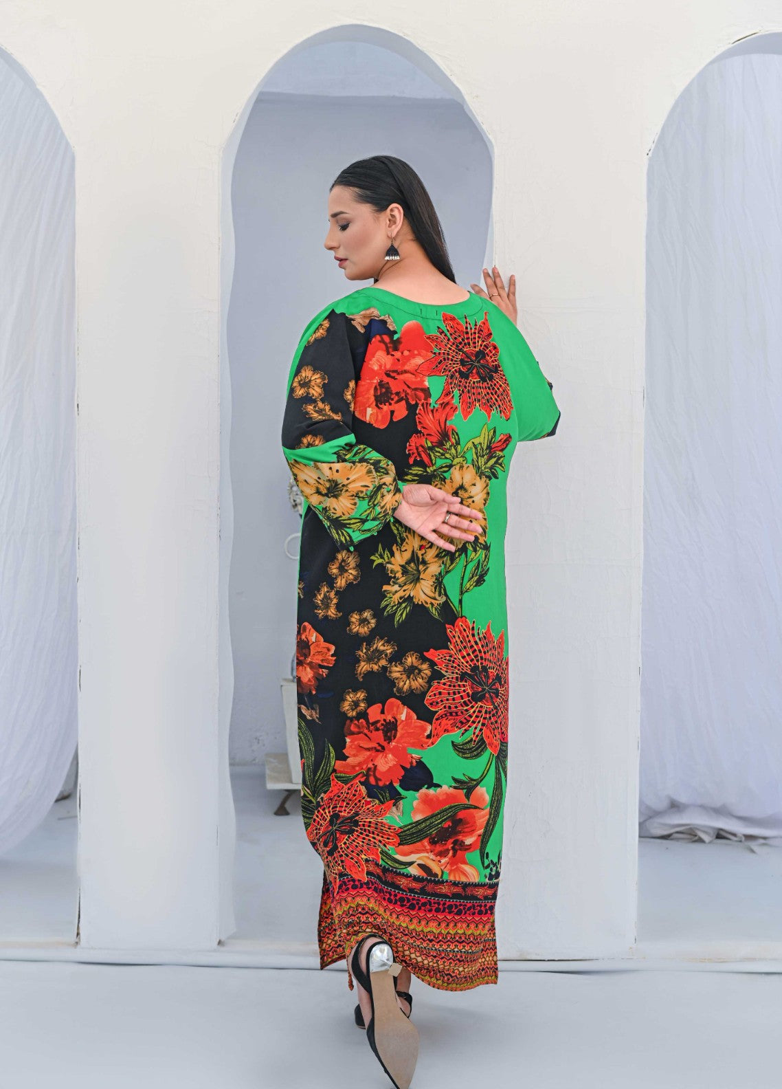 MG by Madiha Gohar Women Pret 1 Piece Printed Black and Green Kaftan - Casual Collection