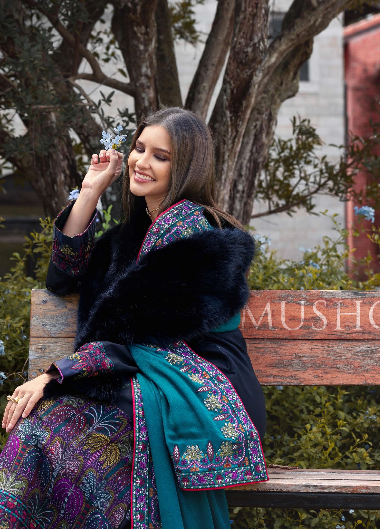 • Embroidered sleeves border (silk)