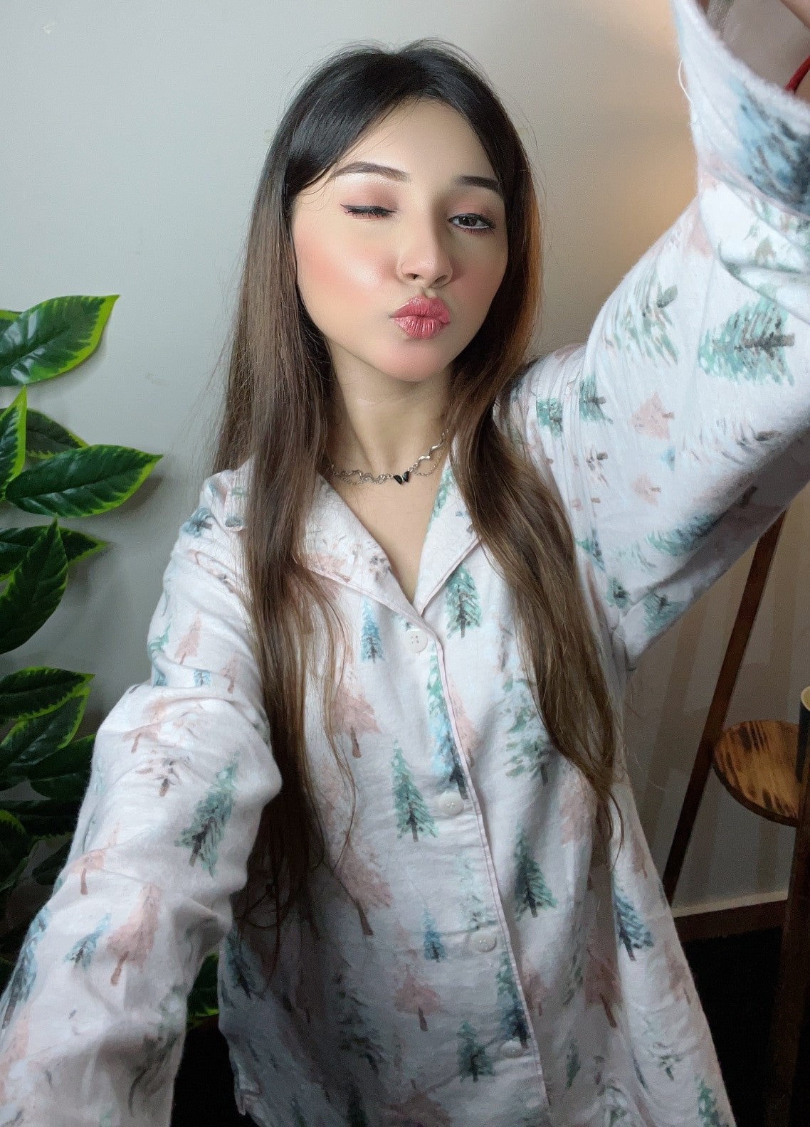 Cozy up in this 2-piece women pajama suit featuring a soft fabric and a charming forest-inspired print with deer and trees. Designed for ultimate comfort and a relaxed fit, it is perfect for lounging or bedtime.