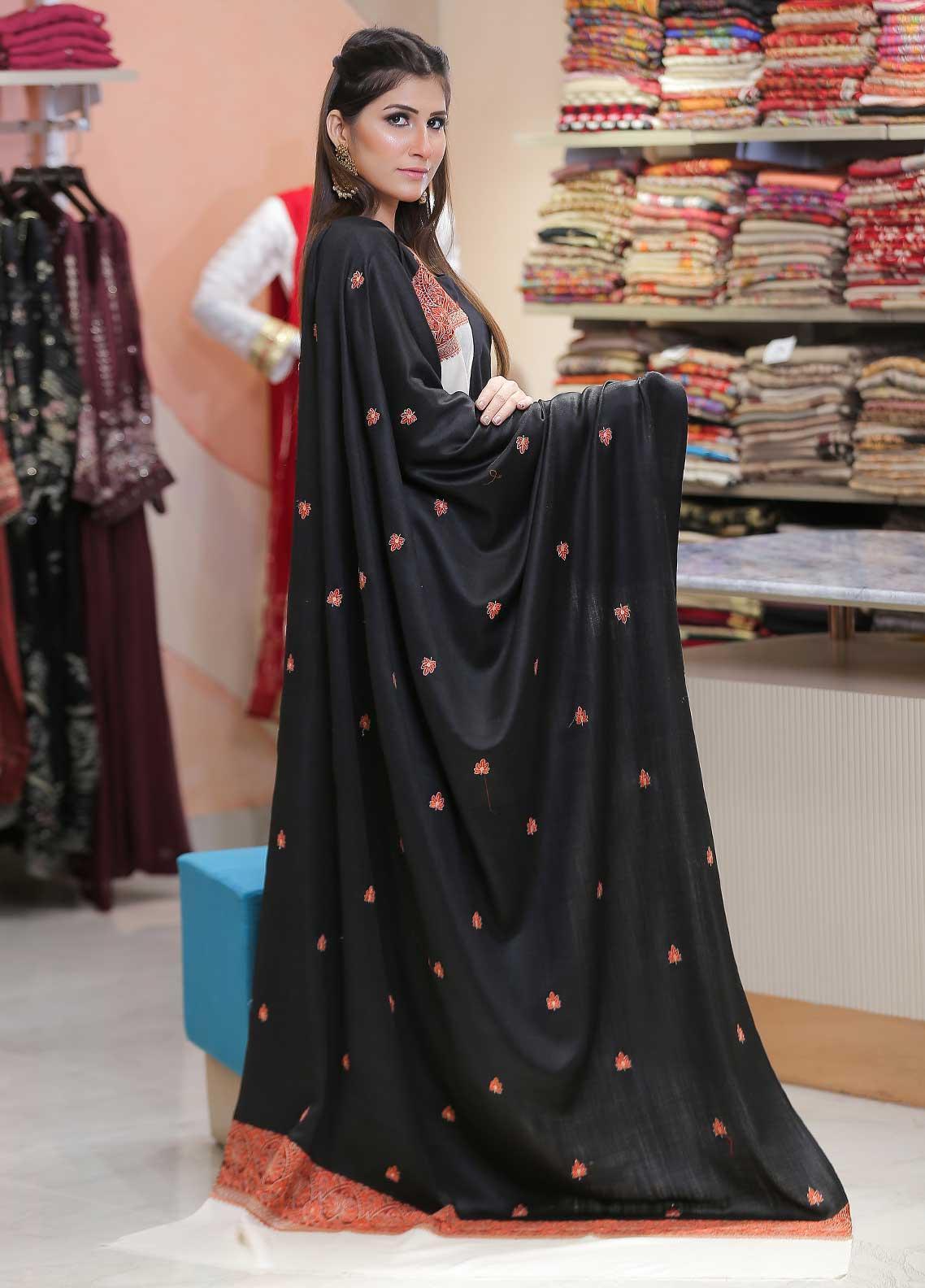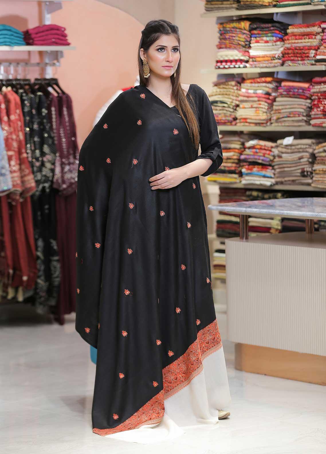 Sanaulla Exclusive Range Pashmina Shawl SU21PP AKP-26 Black-10 Pure Pashmina Shawls