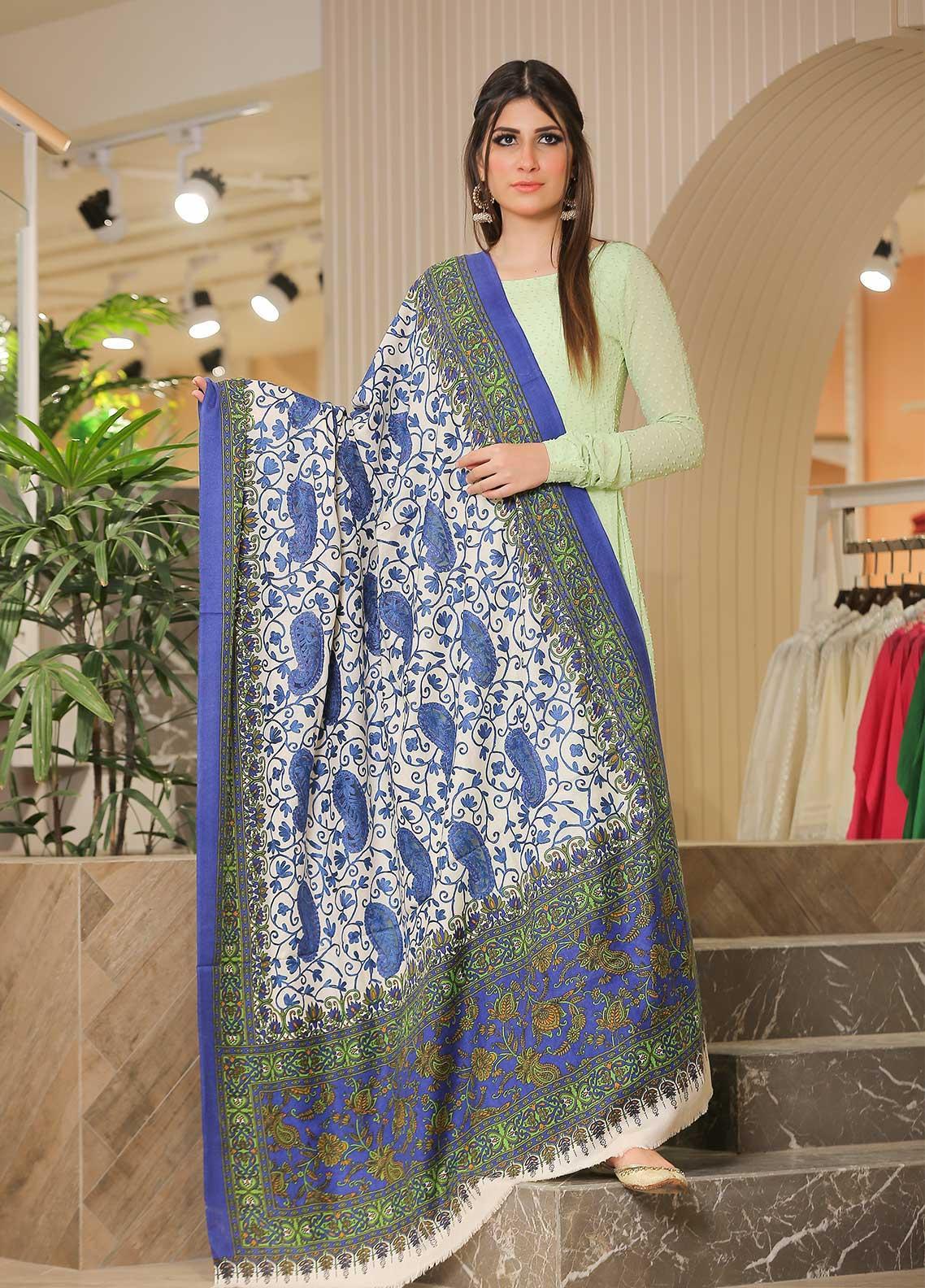 Sanaulla Exclusive Range Pashmina Shawl SU21PP AKP-21 R-Blue Pure Pashmina Shawls