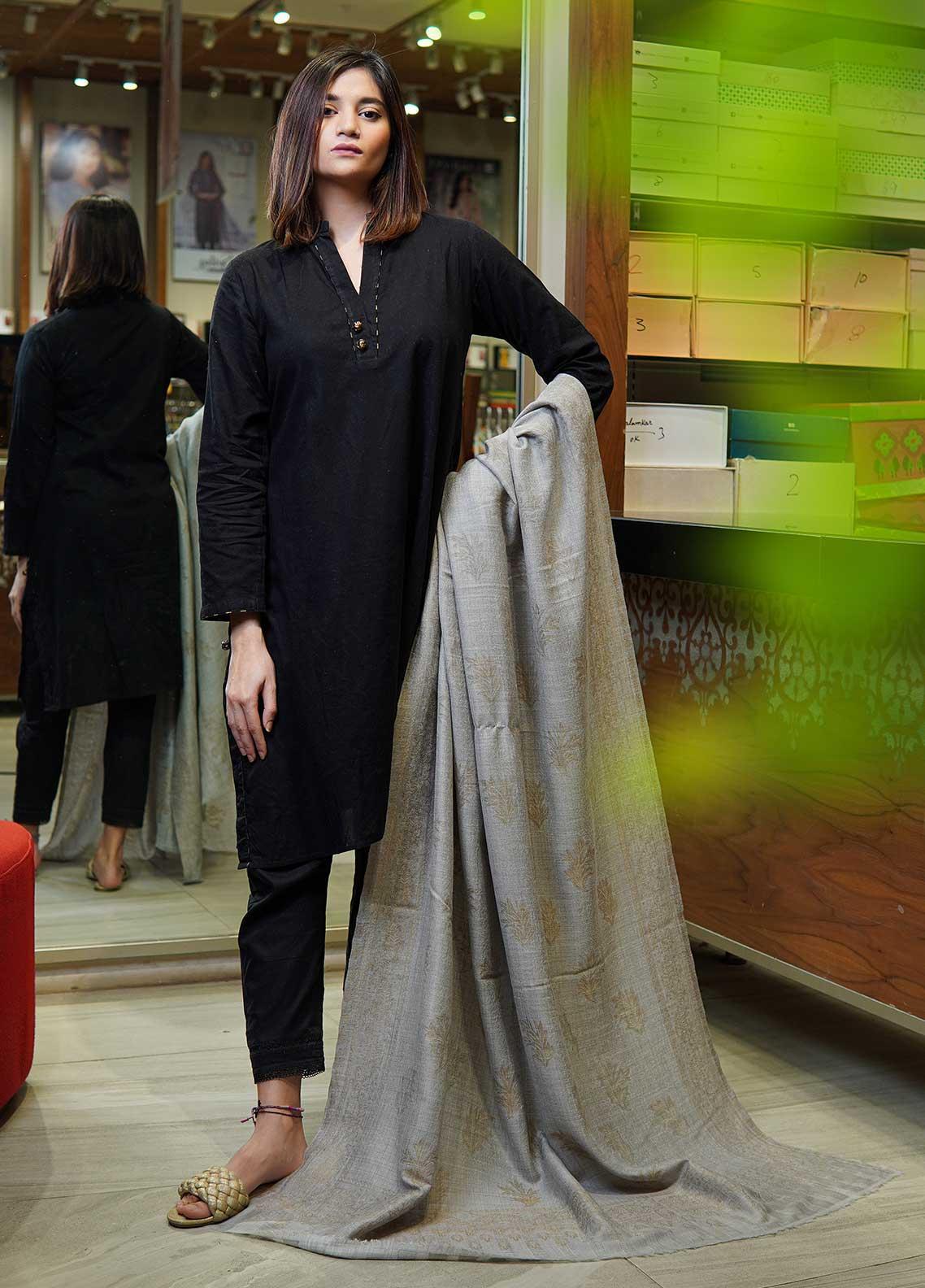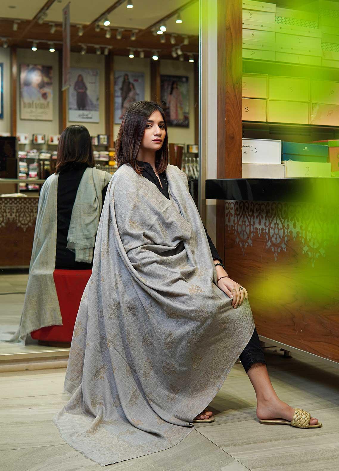 Sanaulla Exclusive Range Pashmina Shawls MAMA-13 Grey-2 - Pashmina Shawls