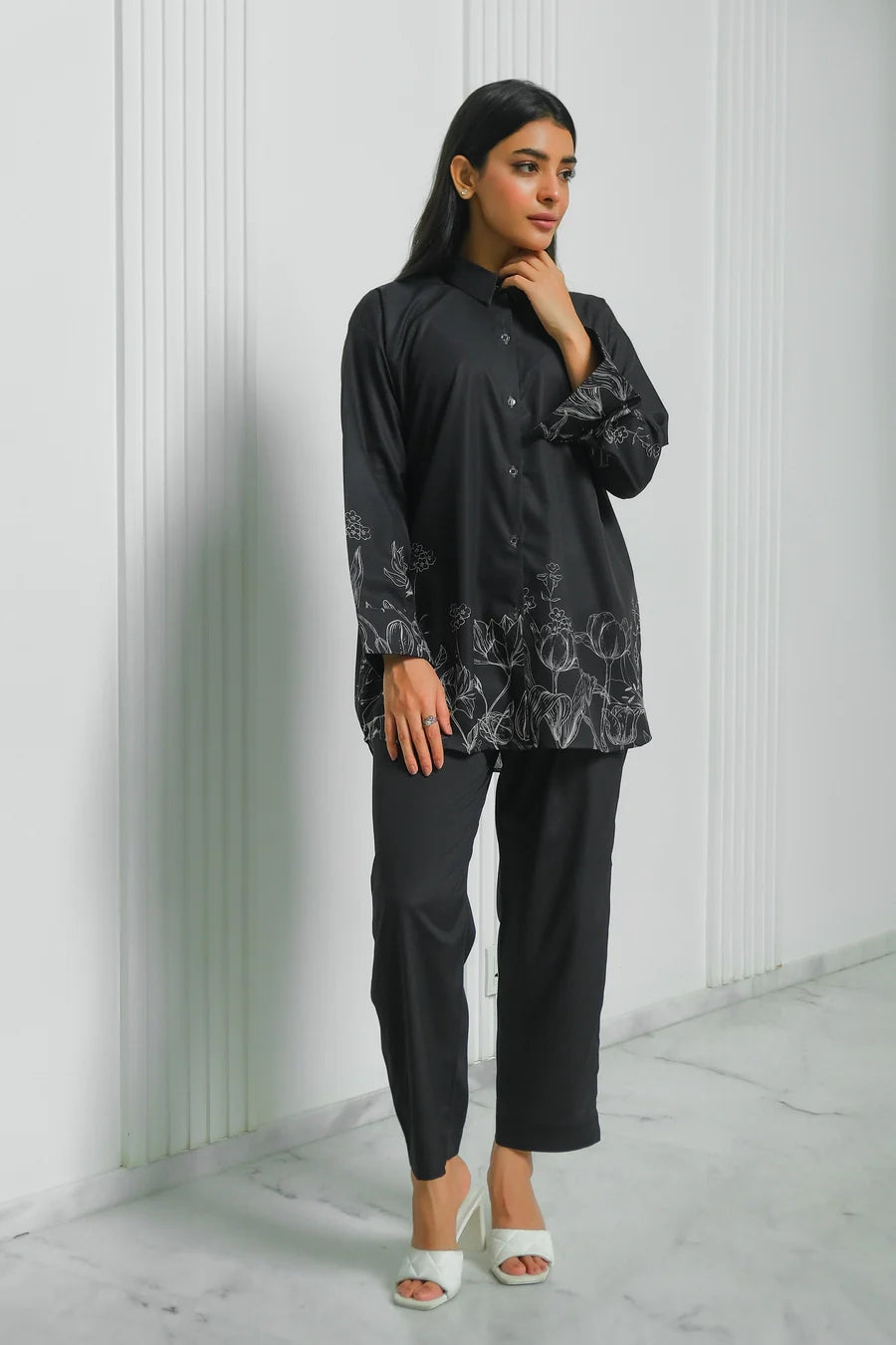 The radiant ensemble offers a unique and stylish look for any special occasion. This 2-piece suit features a chic contemporary short shirt with minimal floral prints. The matching trousers make it a trendy outfit to style at fun gatherings.