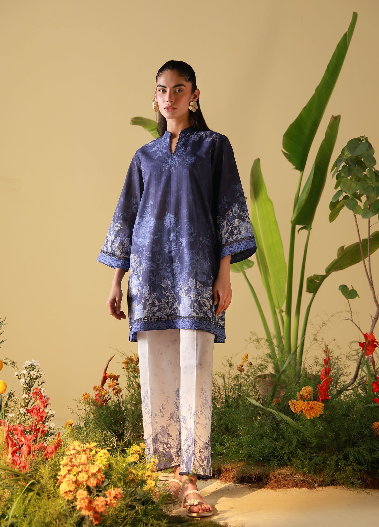 Dusky indigo hues washed with delicate floral impressions create a calm, classic aesthetic. The print feels refined and slightly vintage, offering depth without heaviness. An easy choice for elevated everyday wear.
