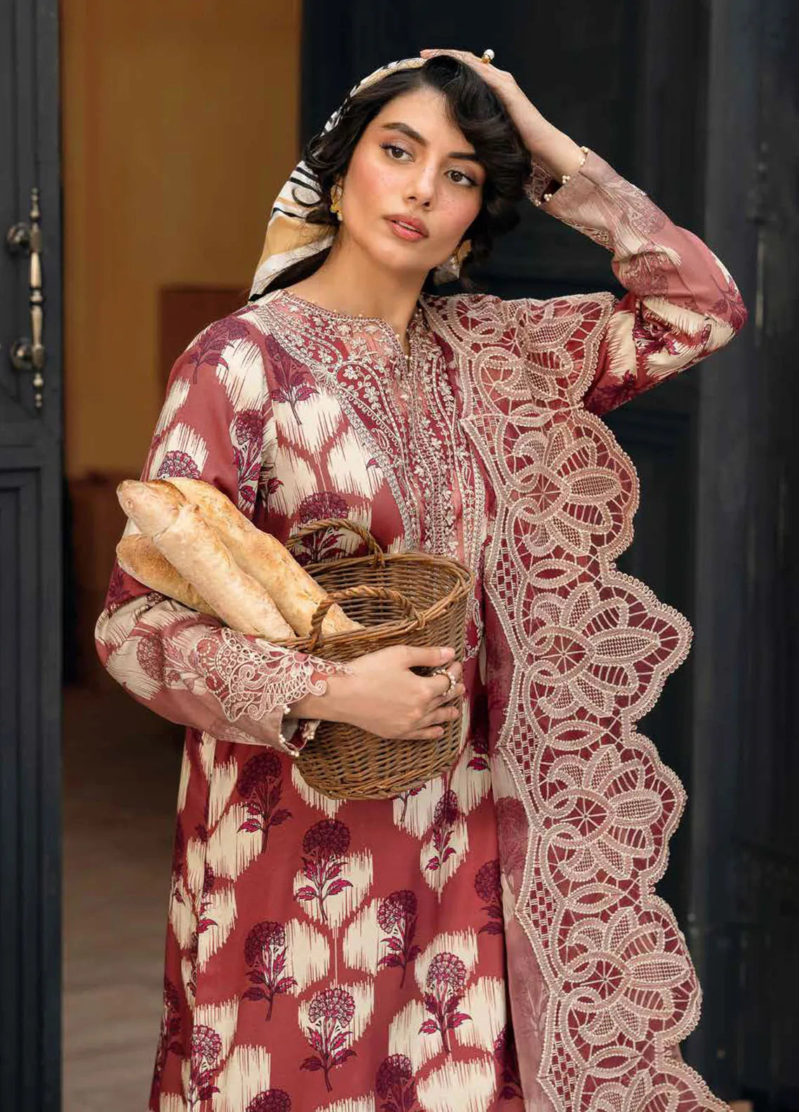 • Embroidered And Printed Chiffon Dupatta