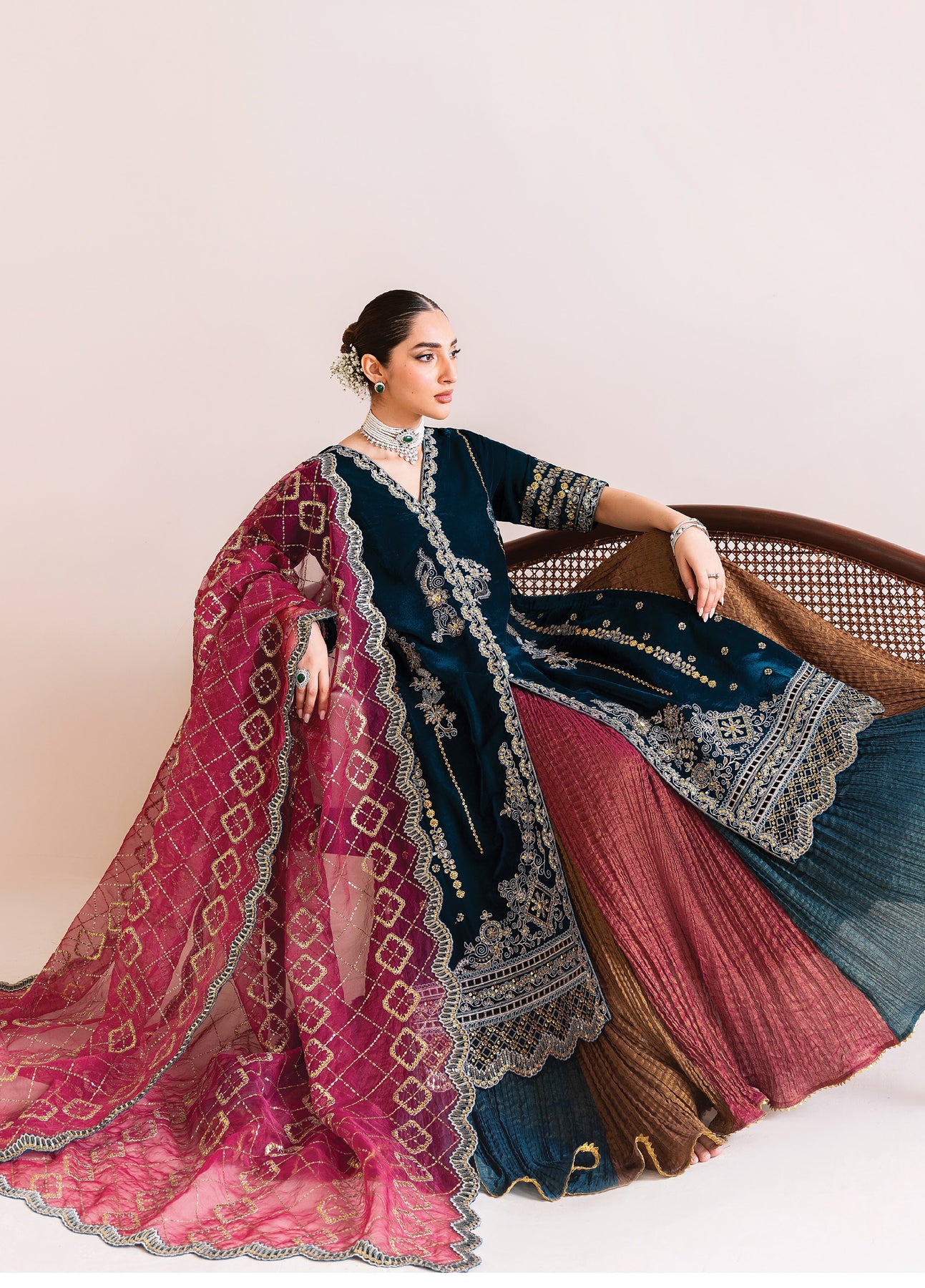 • Embroidered Velvet Front + Back + Sleeves Border