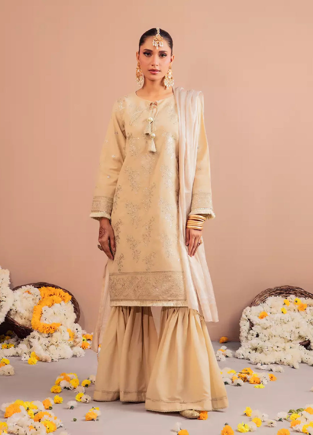 Murawwat by Lavish Premium Unstitched Luxury Chiffon Embroidered 3 peice LV25MC M-09 Blush Latte - Formals Collection