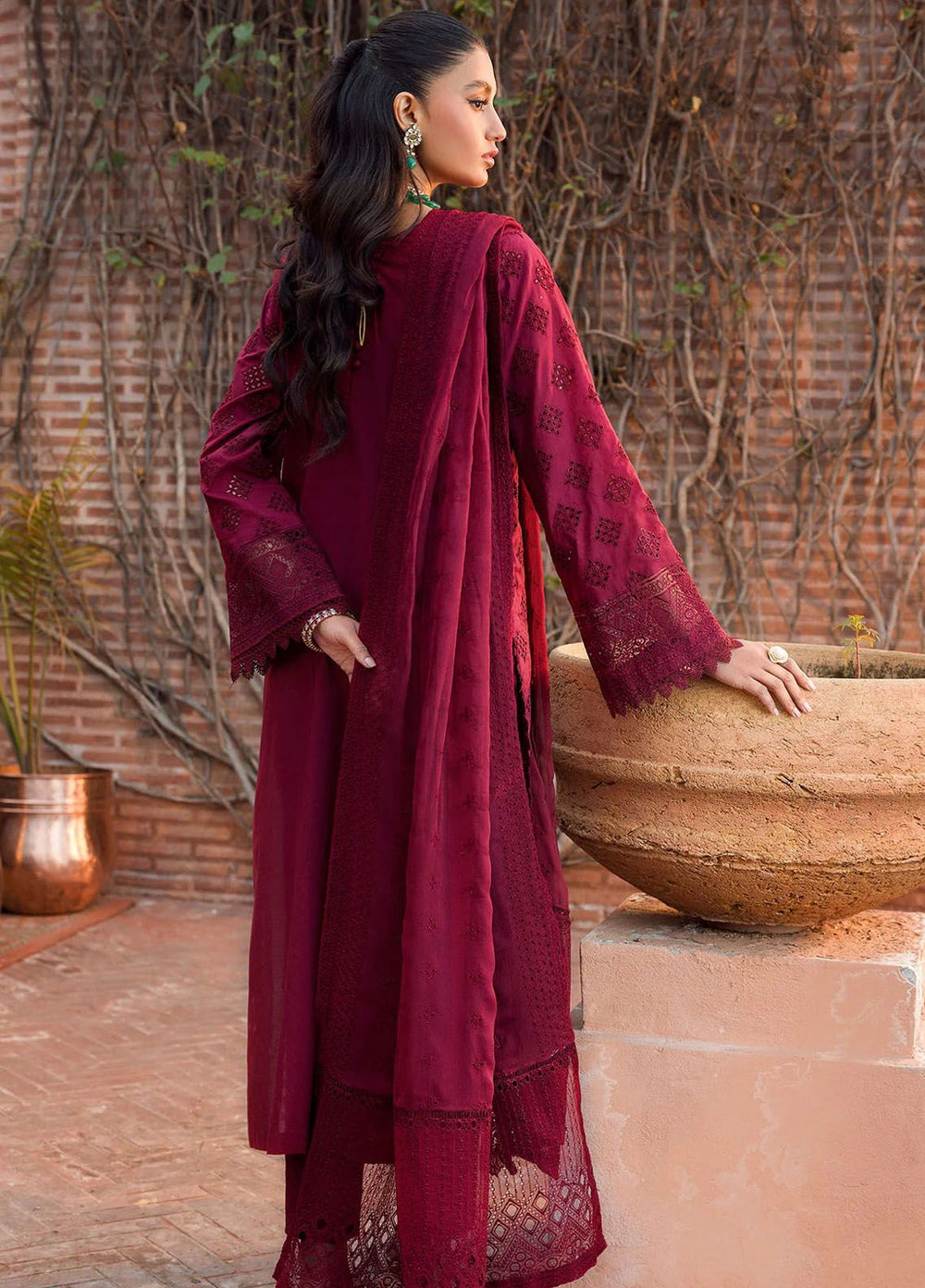 The Secret Garden by Mushq Embroidered Lawn Suits Unstitched 3 Piece MQ24SG D-1A Rosewood - Summer Collection