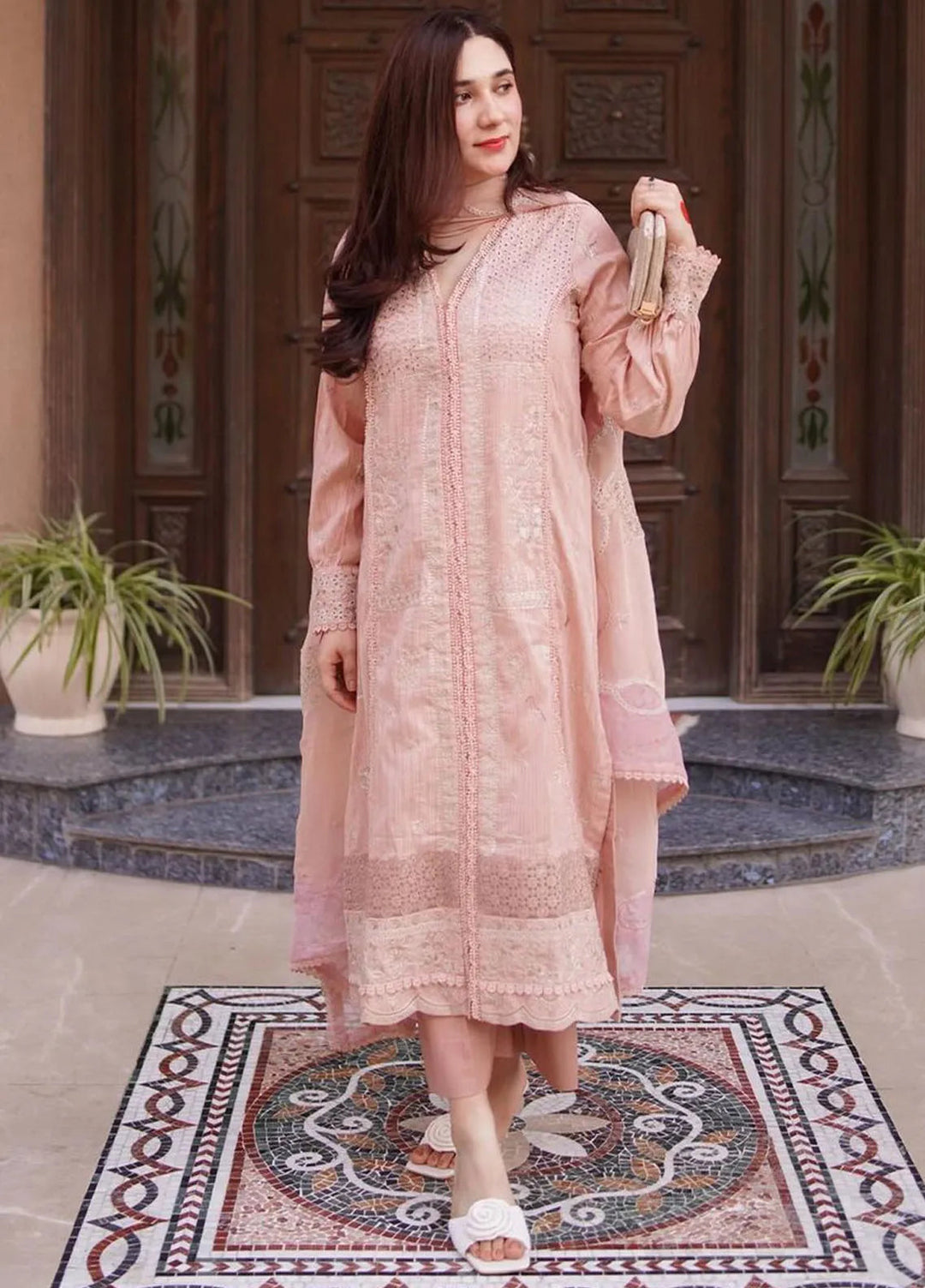 Cross Stitch Embroidered Lawn Suits Unstitched 3 Piece CS24EL D-20 Peach Glam - Eid Collection