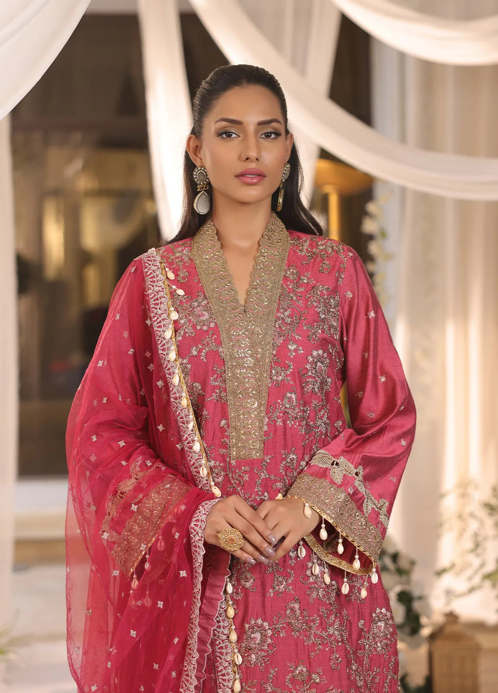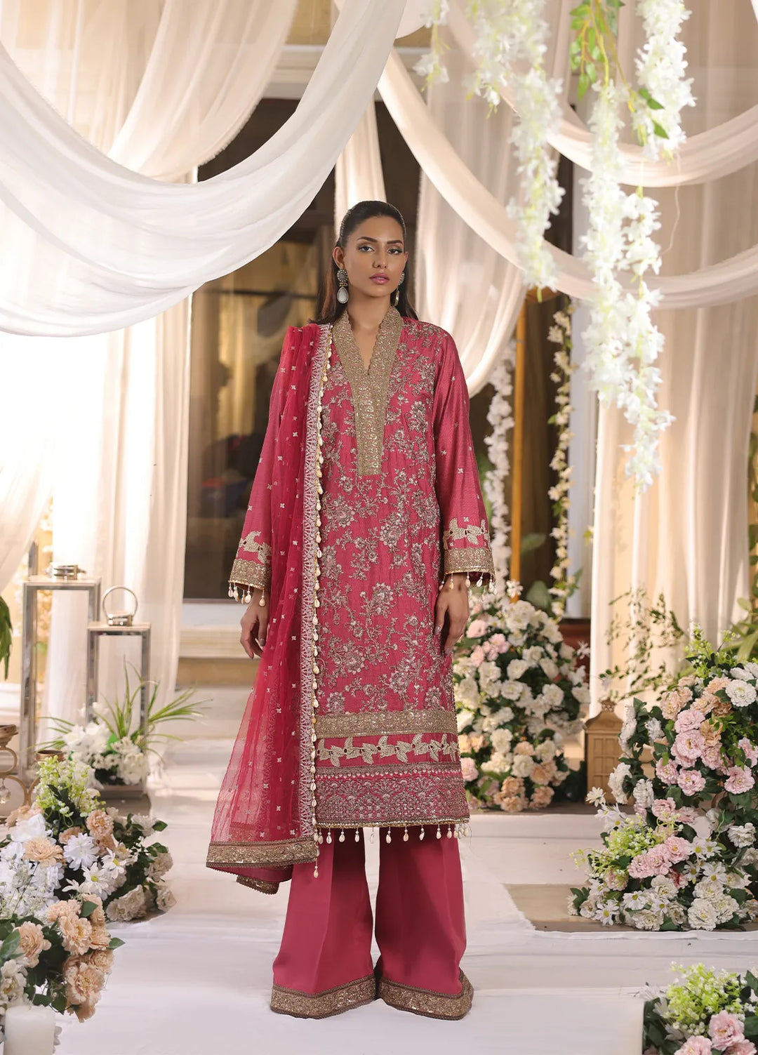 Sahar Embroidered Cross Hatch Suit Unstitched 3 Piece SHR24 CH-E-V1-24-03 Crimson Elysium - Winter Collection