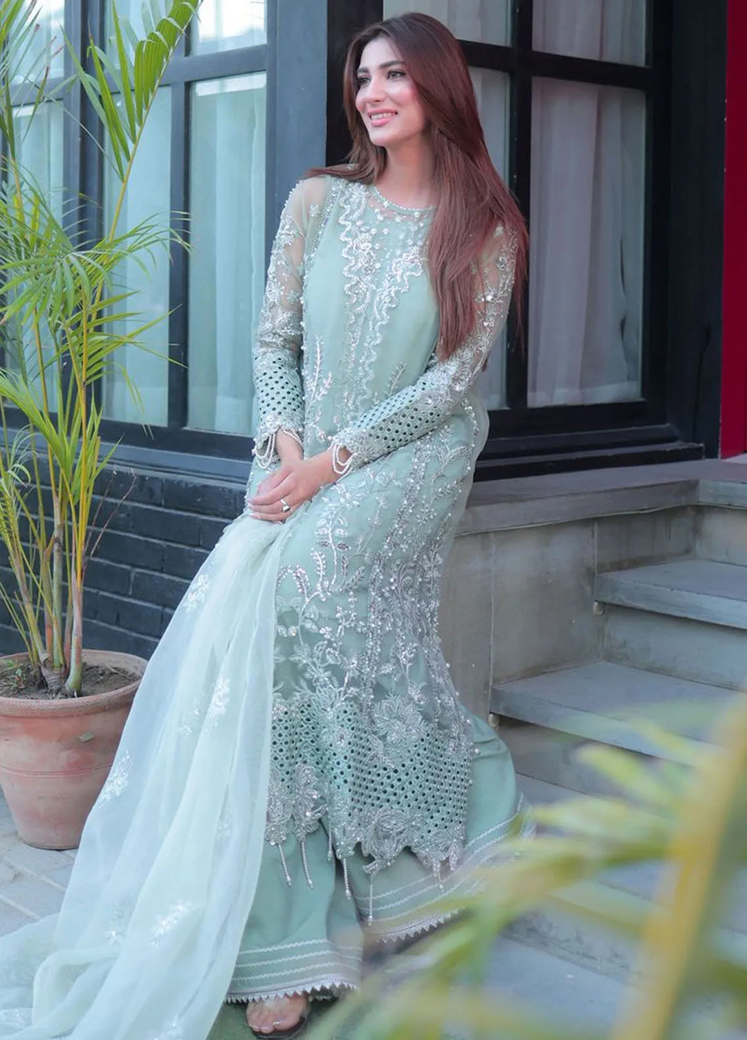 Azure Embroidered Net Suit Unstitched 3 Piece AZ24W Mah Jabeen - Formals Collection