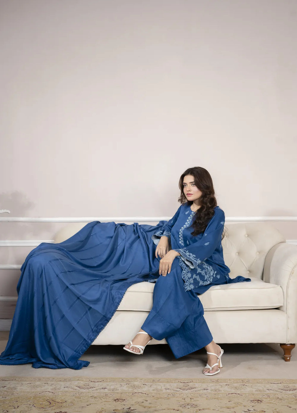 Anabelah Embroidered Lawn Suits Unstitched 3 Piece Glory Blue - Festive Collection