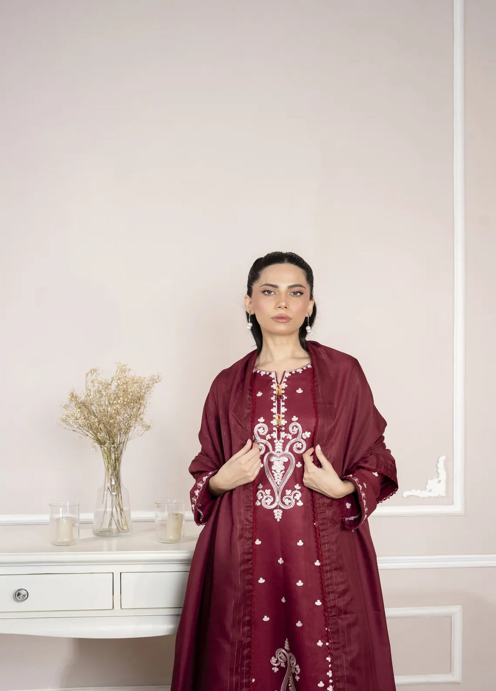 Adaa By Mahnoor Embroidered Raw Silk Suits Unstitched 3 Piece Carmine - Festive Collection