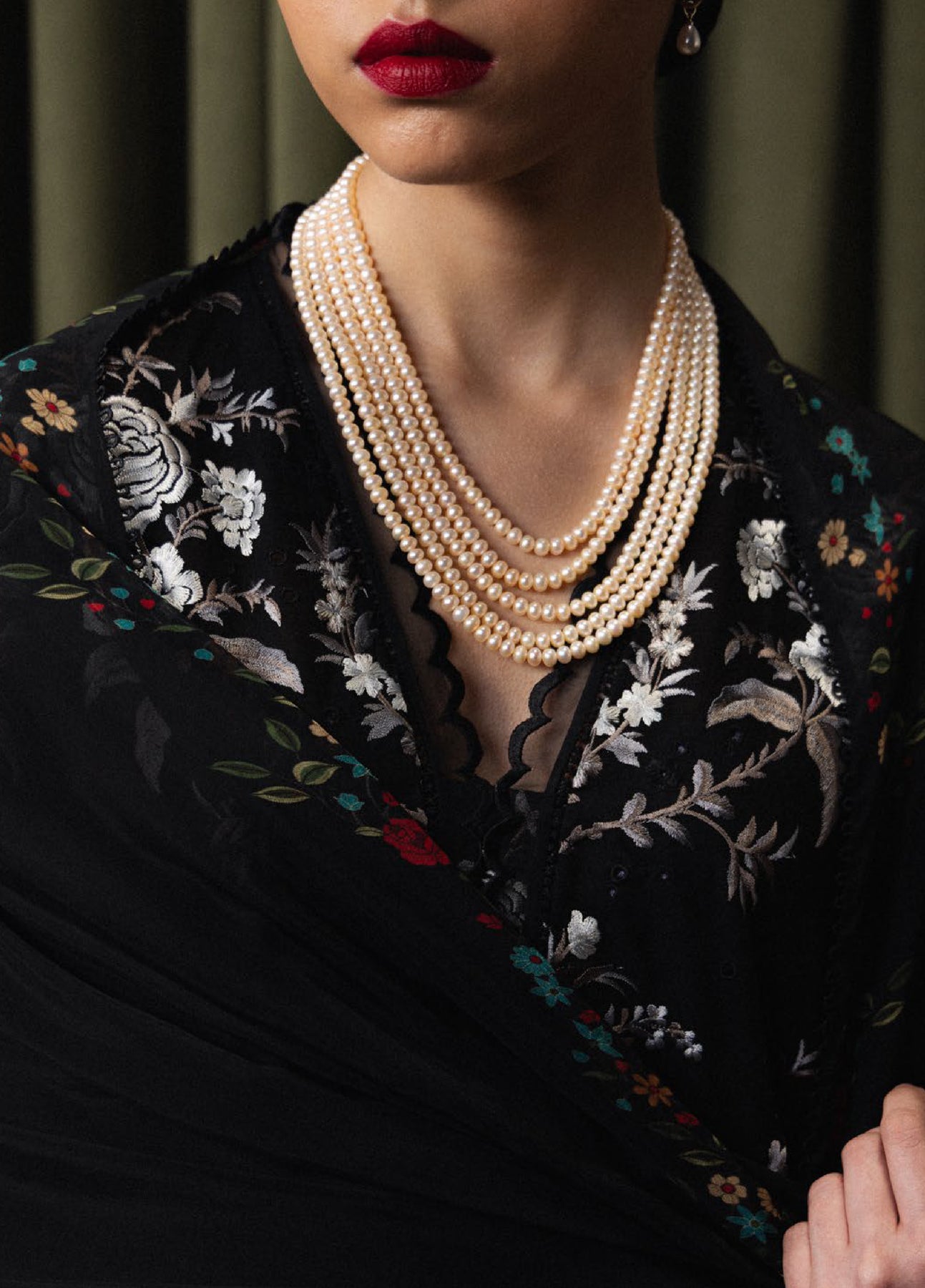 Takumi is crafted in black with intricate gaara-inspired embroidery, paired with a coordinating printed dupatta and detailed cambric trousers. Accented with organza borders and embroidered panels, the ensemble exudes heritage-rooted sophistication and a bold, commanding presence.