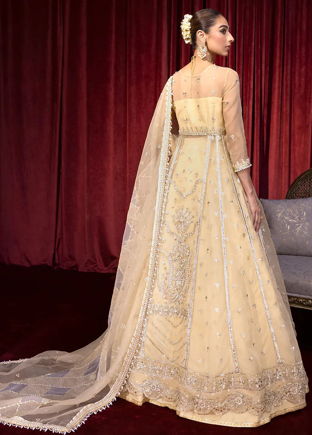 - Embroidered Organzah Back Body Embellished With Add Work 26 Inches