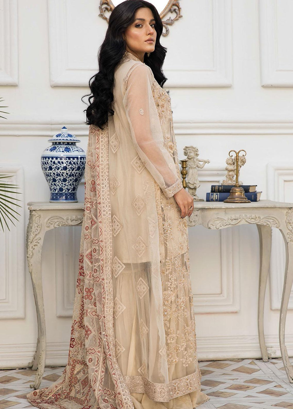 Embroidered & Hand Embellished Bareeze Net Front 1.25 Yards