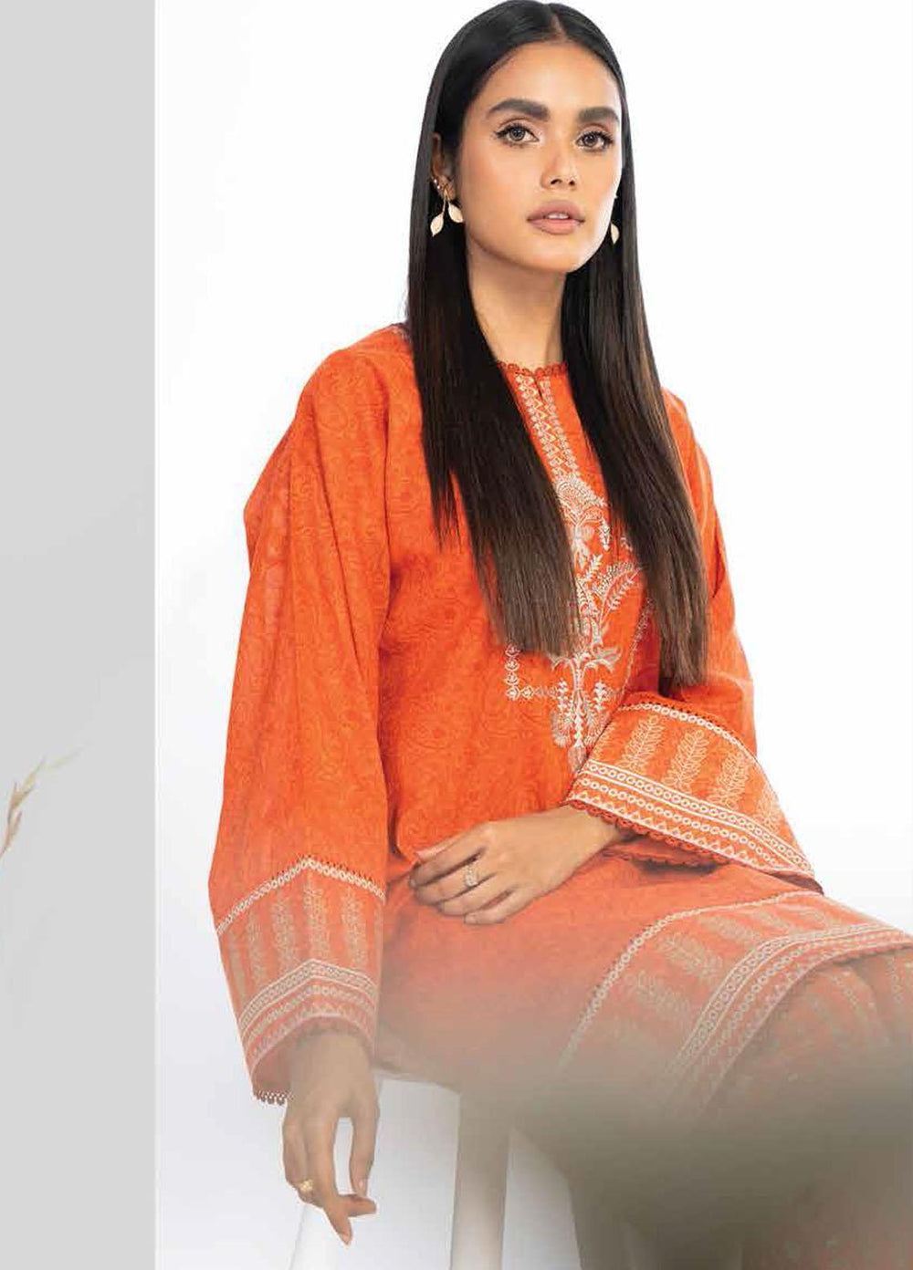 Al Karam EmbroideRed Lawn Suits Unstitched 2 Piece AK23SSL SS-52.1-23-Orange - Summer Collection