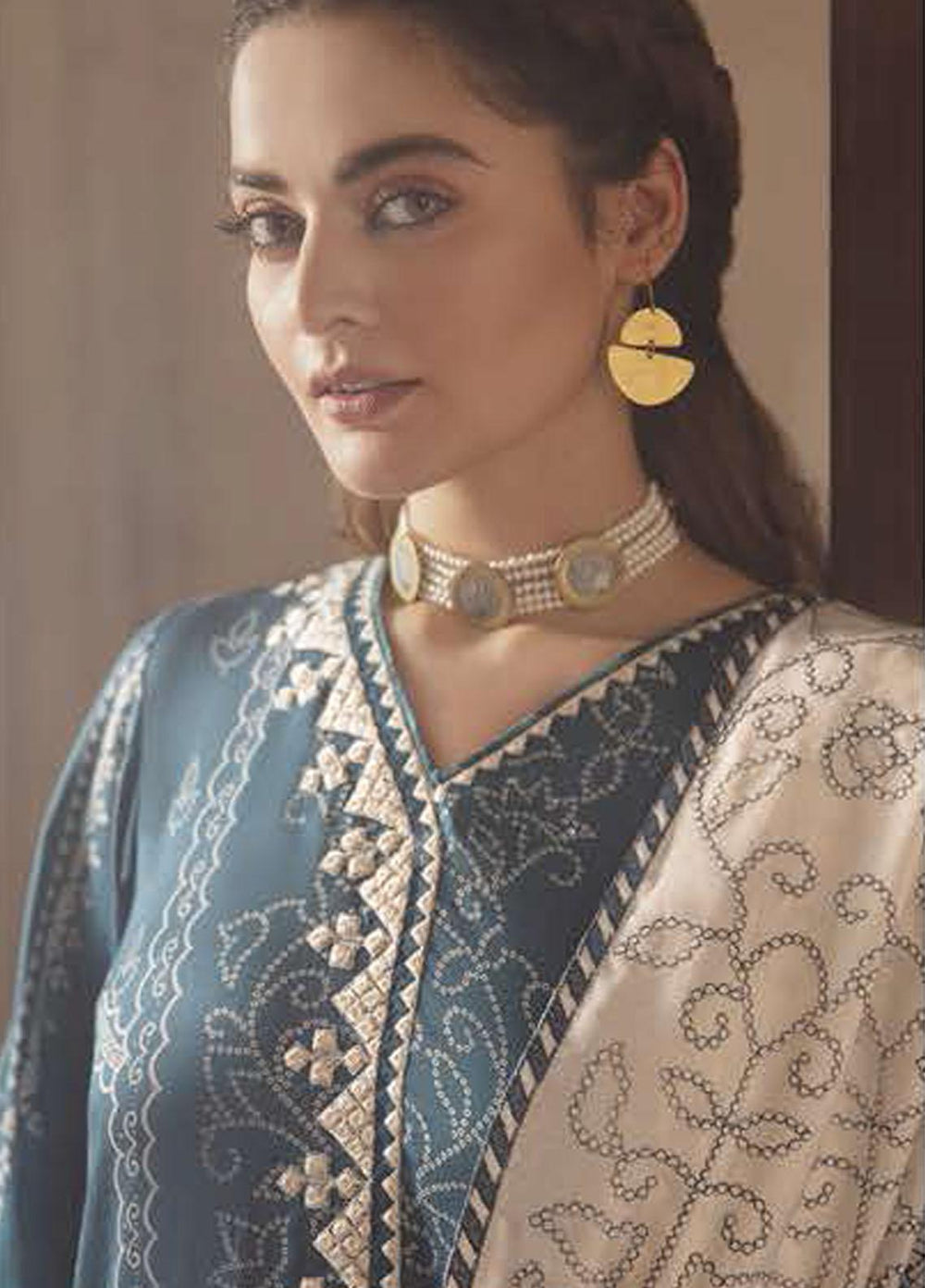 Azal by Cross Stitch Embroidered Cotton Satin Suits Unstitched 3 Piece CS21AS 09 TEAL RADIANT - Winter Collection