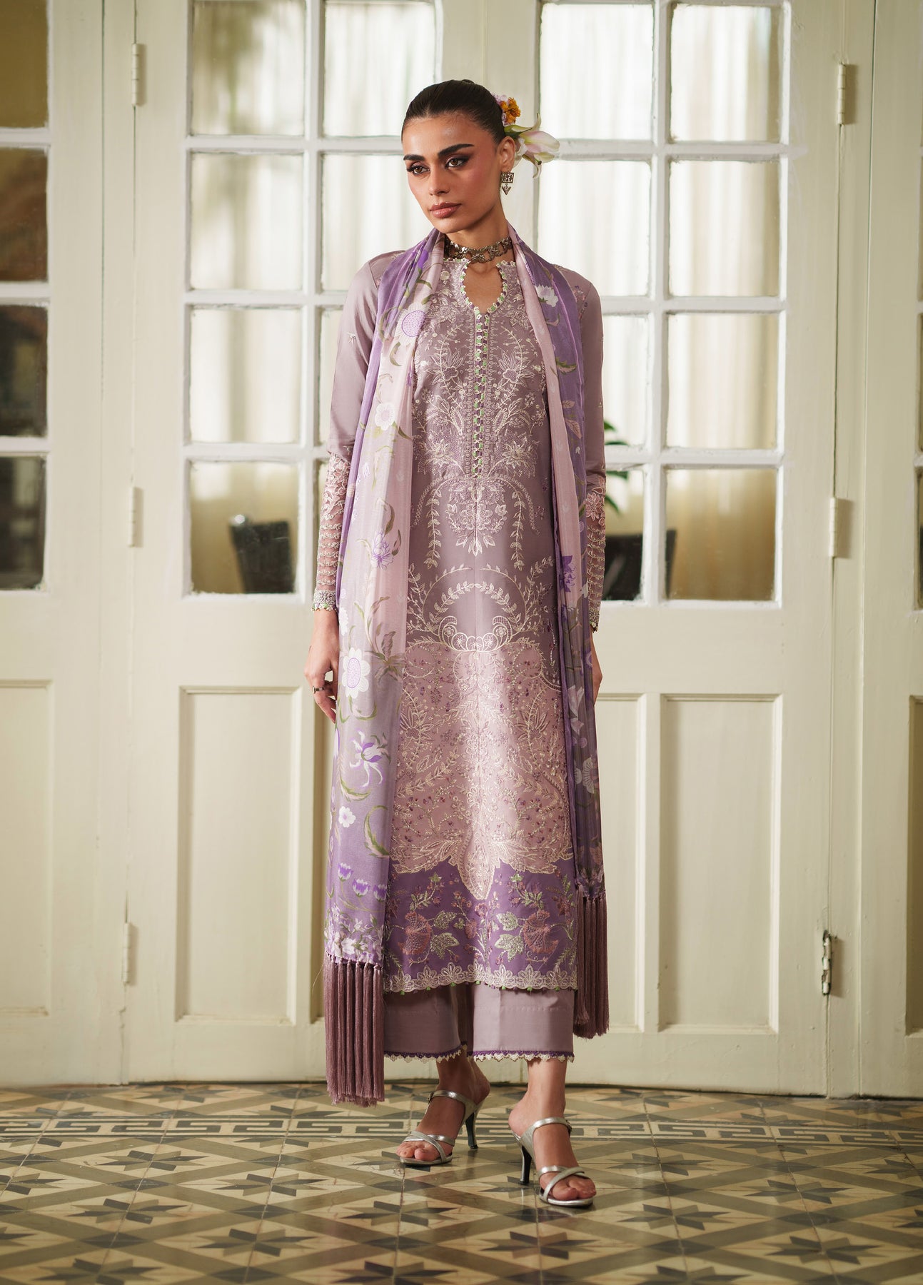 - Dyed Lawn Embroidered Left & Right Ending Motifs (2 Pieces)
