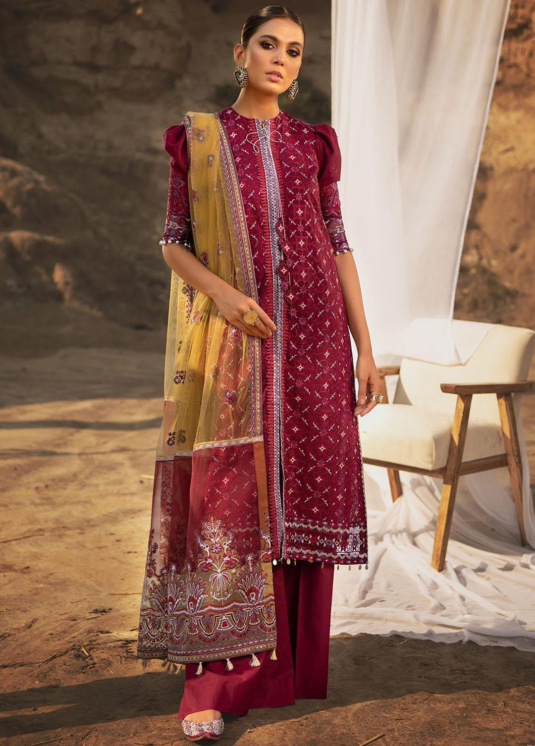 This collection is full of eye-catchy prints amazing colors; each outfit is unique from another, it contains beautiful and vibrant colors. This collection is made with a combination of silk and velvet fabric, don’t we know silk is considered as rich fabric and worth high but we`ve kept the price range under control. This collection consists of 3 piece unstitched suits in which you`ll get a shirt which is made of velvet silk fabric, the dupatta is made with pure silk fabric and dyed trouser, so ladies it is time to ramp your winter wardrobe with AIK Inaara velvet collection.