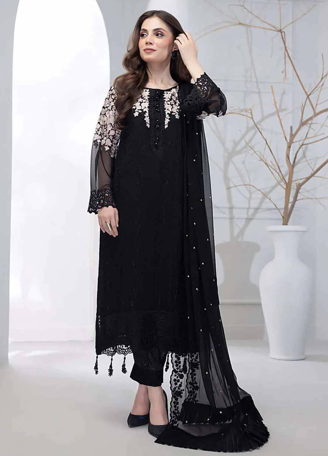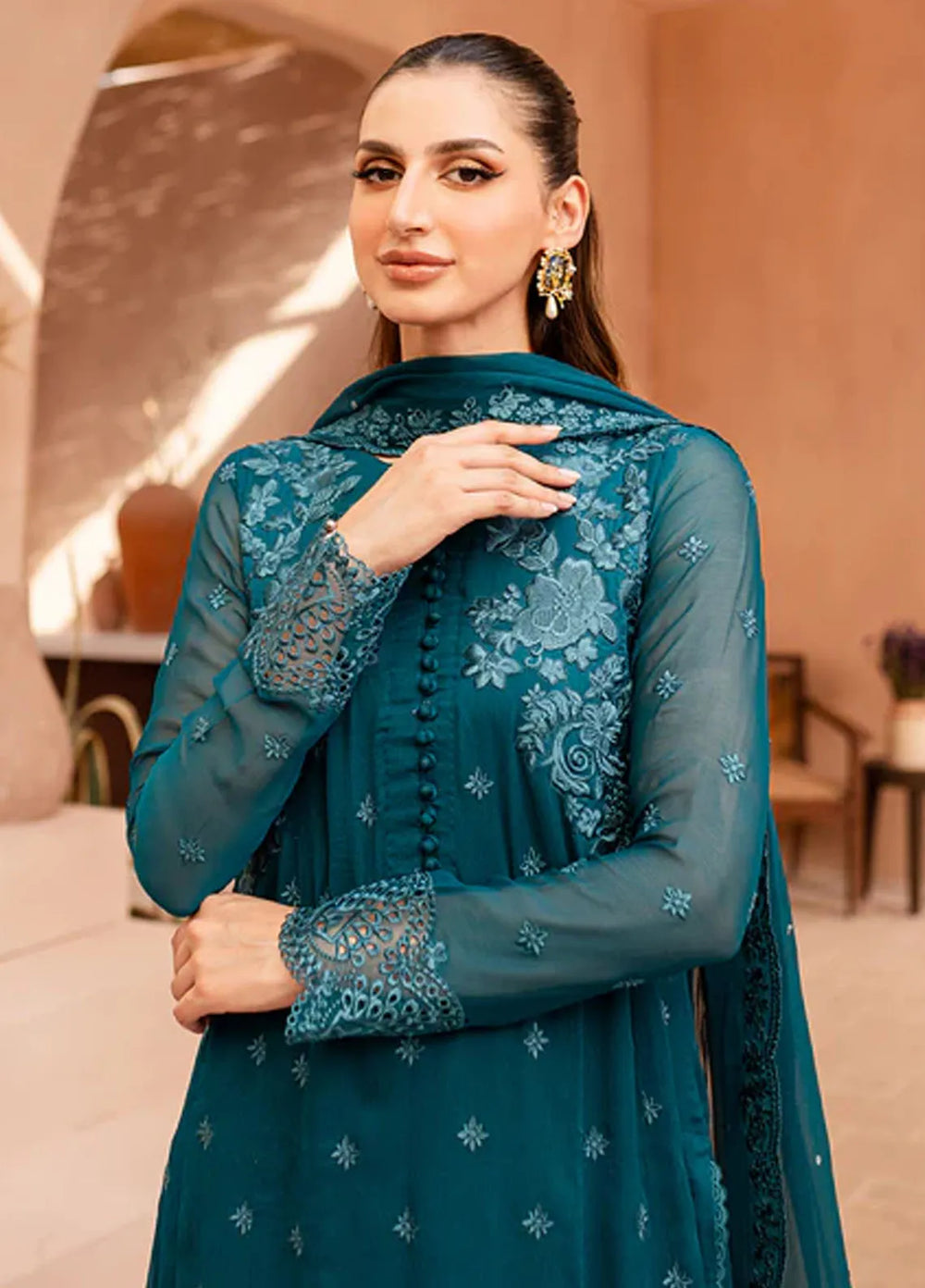 If you want to wear dresses that are not too overpriced and for that quality is still no compromised then this collection all up to what you`re looking for, this luxury collection is made with the finest quality of chiffon fabric, they have presented a wide range of dresses with bright colour theme, each dress in this collection is adorned with high end embroidery work, this collection consist of 3 piece unstitched suits, so you can design it according to your style, so if you`re planning to go out on a romantic dinner with your other half or there is an upcoming family event then dresses in this collection is all about you want to wear in these events.