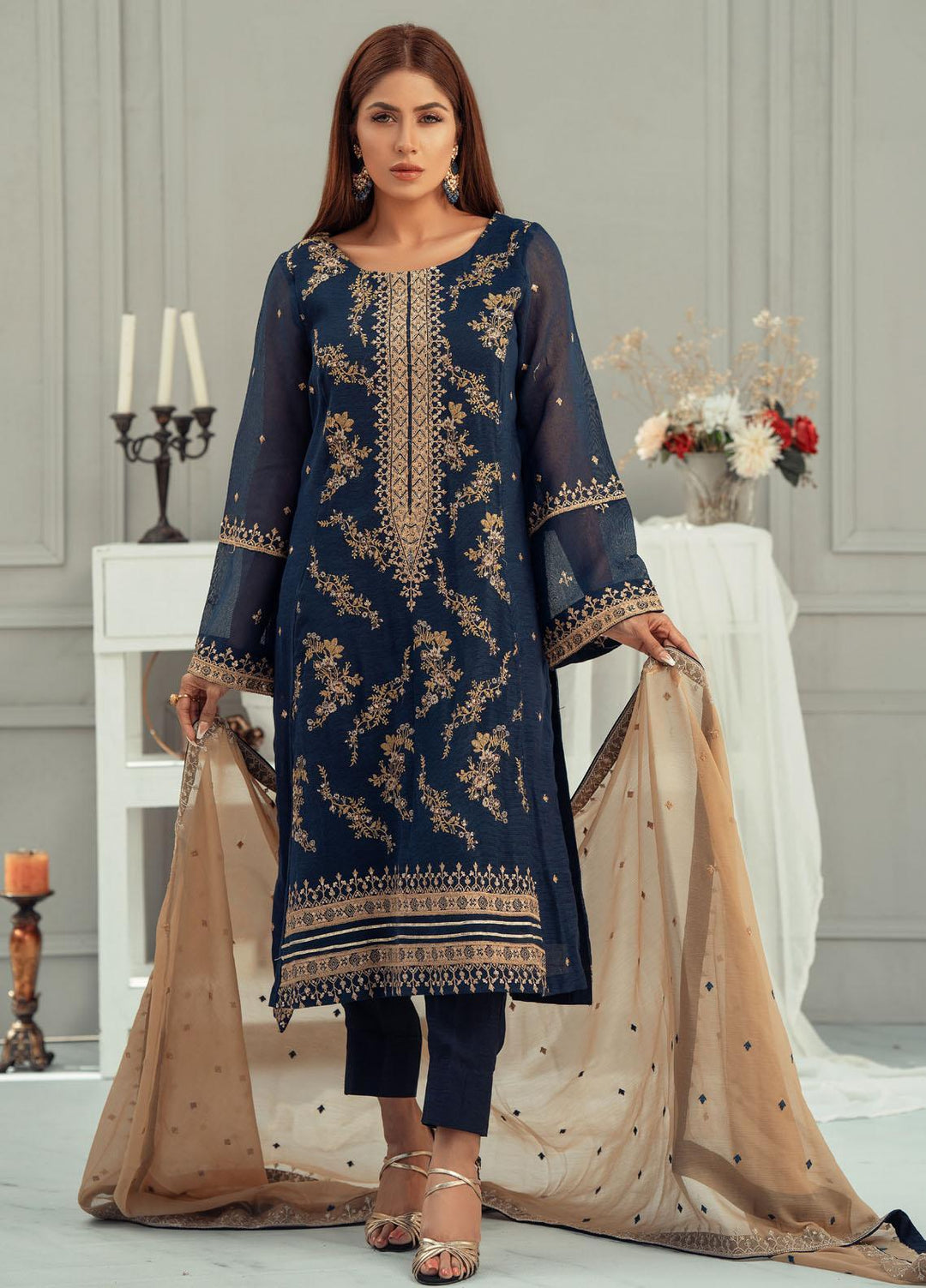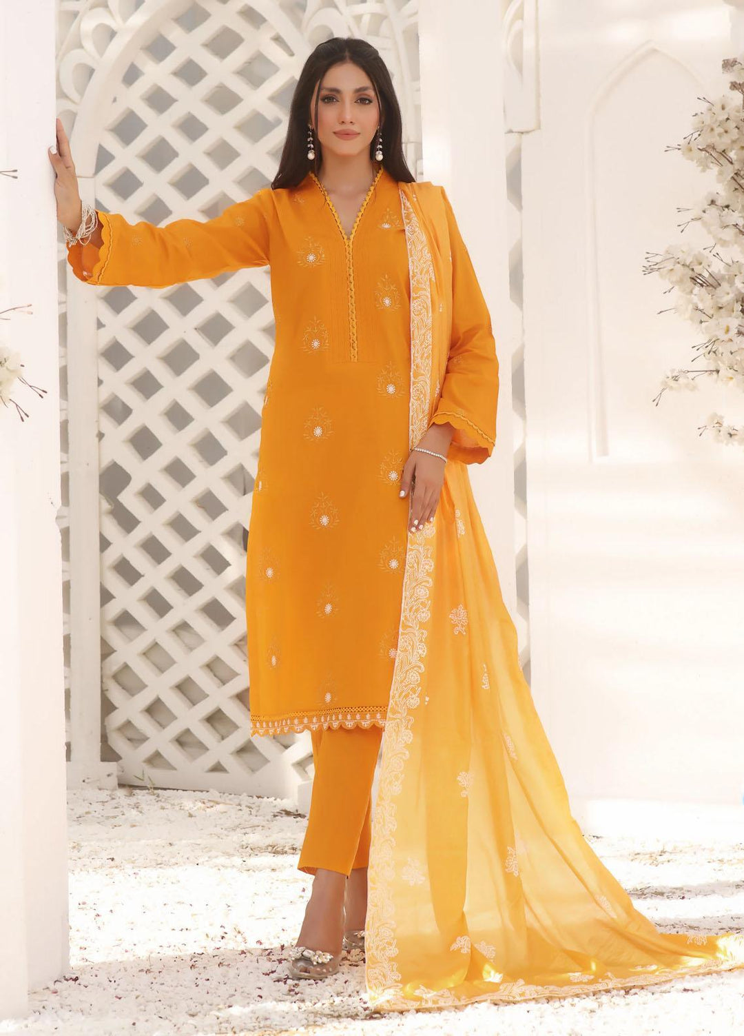 The premium unstitched chiffon collection by Fascino. This collection encompasses 12 alluring designs. Each of the outfits comes with a unique style and intricacies. The name flora in itself tells a floral story of art and design in the apparel. The dresses are luxury, and can be carried to special events, weddings, parties or a dinner date with your husband.