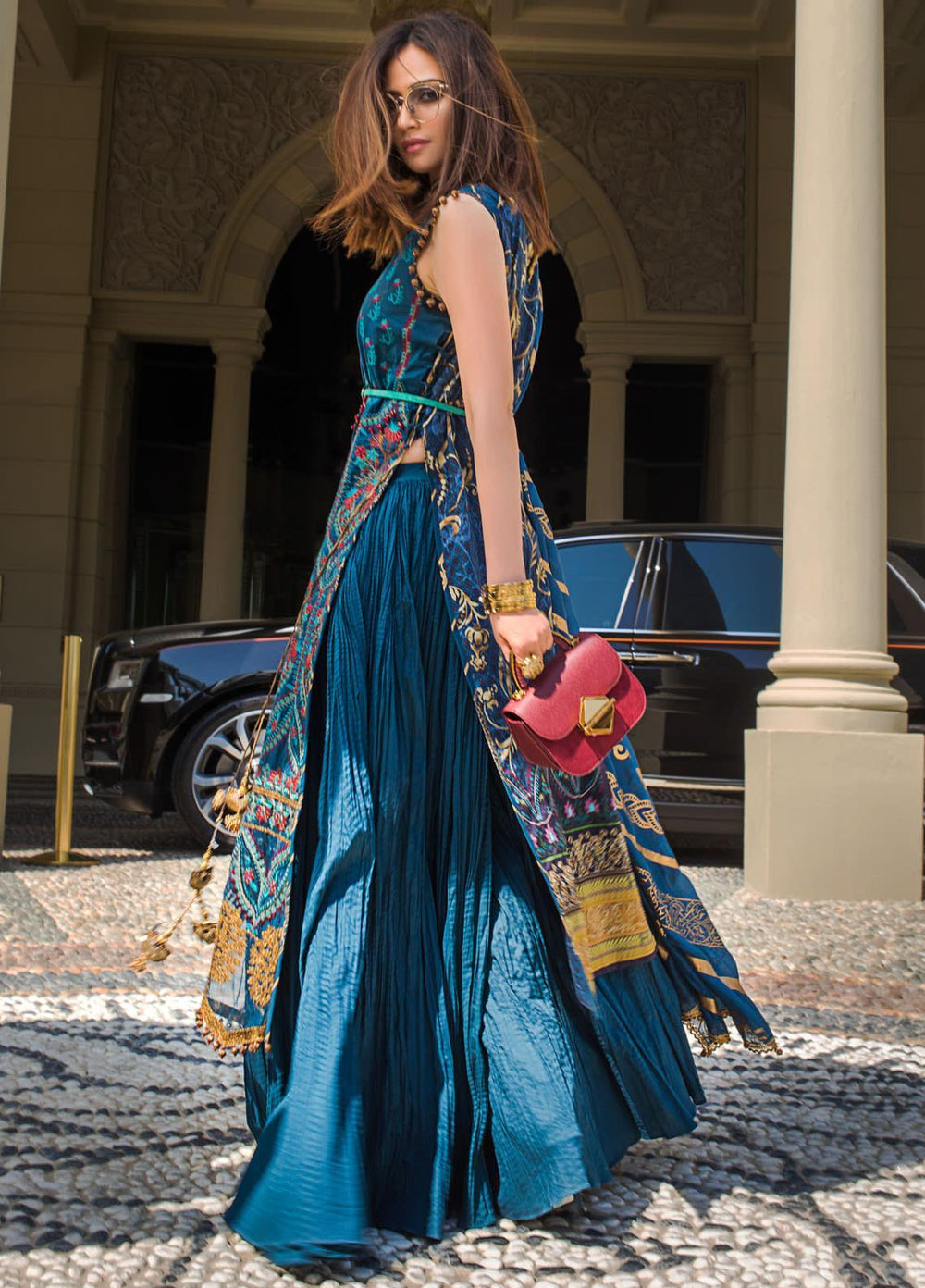 Each and every dress in this collection is beautifully embroidered and designed with motifs, the patches are fully embroidered for back, front and damaans, the colour combination is just the perfect blend of elegance and decency, you can also see bell bottoms are paired up with straight shirts, dupattas are made with silk fabric which have digital prints some of the dupatta are also embroidered and some of the damaan and sleeves are with cut work.