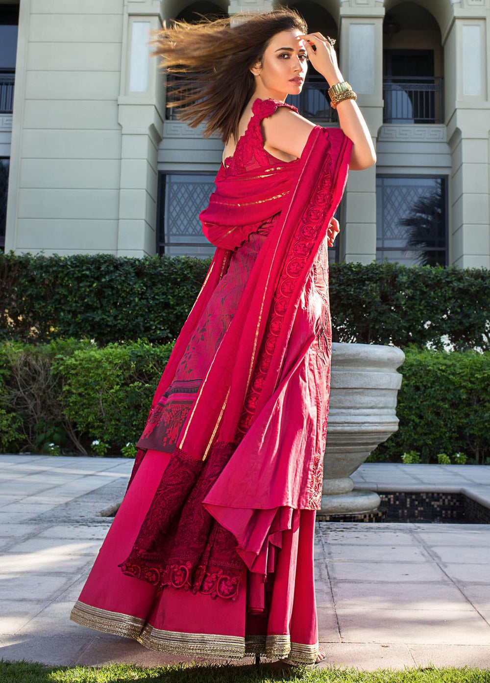This chiffon collection is oriented with fancy embroideries, beautiful motifs and amazing craftsmanship ideas, it has a perfect and balanved range of light and dark hues, however some of the light shades are also combined with dark hues to gives you more catchy look, so give yourself classy look this winter by wearing Mahiymaan by al Zohaib chiffon collection.